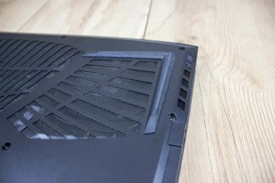 Auch farbtechnisch verhält sich das Gigabyte Aero 17 eher unauffällig. Aufgeklappt ist das Aluminium mattschwarz und somit nicht so anfällig für Fingerabdrücke. Der Deckel hingegen verleiht durch das gebürstete, glänzende Aluminium einen professionellen Look. Ein weiteres markantes Merkmal sind die Lüftungsschlitze. Die potente Hardware muss auch vernünftig gekühlt werden.