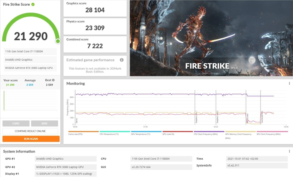 | AORUS 15P YD (GeForce RTX 3080) – 130 W TGP | 28.104 Punkte | 10.626 Punkte |