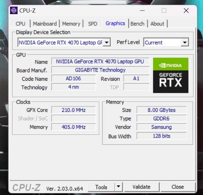 | Grafikleistung | Nvidia GeForce RTX 4070 (8 GB GDDR6 VRAM); 140 W TDP |