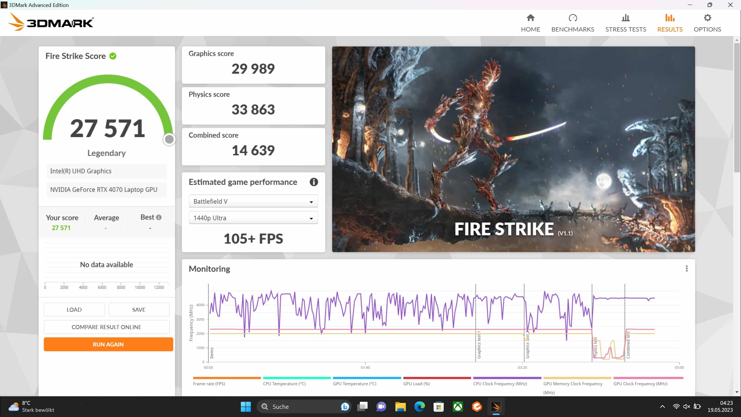 | Fire Strike Gesamt | 27.571 Pkt. |