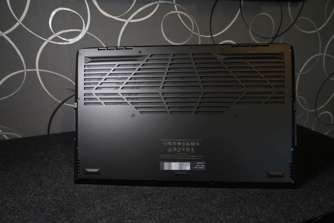Auch das Design des Gigabyte AORUS 17 XE4 erinnert stark an die Vorjahres-Modellgeneration. Das Gehäuse besteht aus matt-schwarzem Kunststoff mit einem eloxierten Finish und fühlt sich dadurch nicht ganz so robust an, wie wir es von manch einem (teureren) Konkurrenten gewohnt sind.