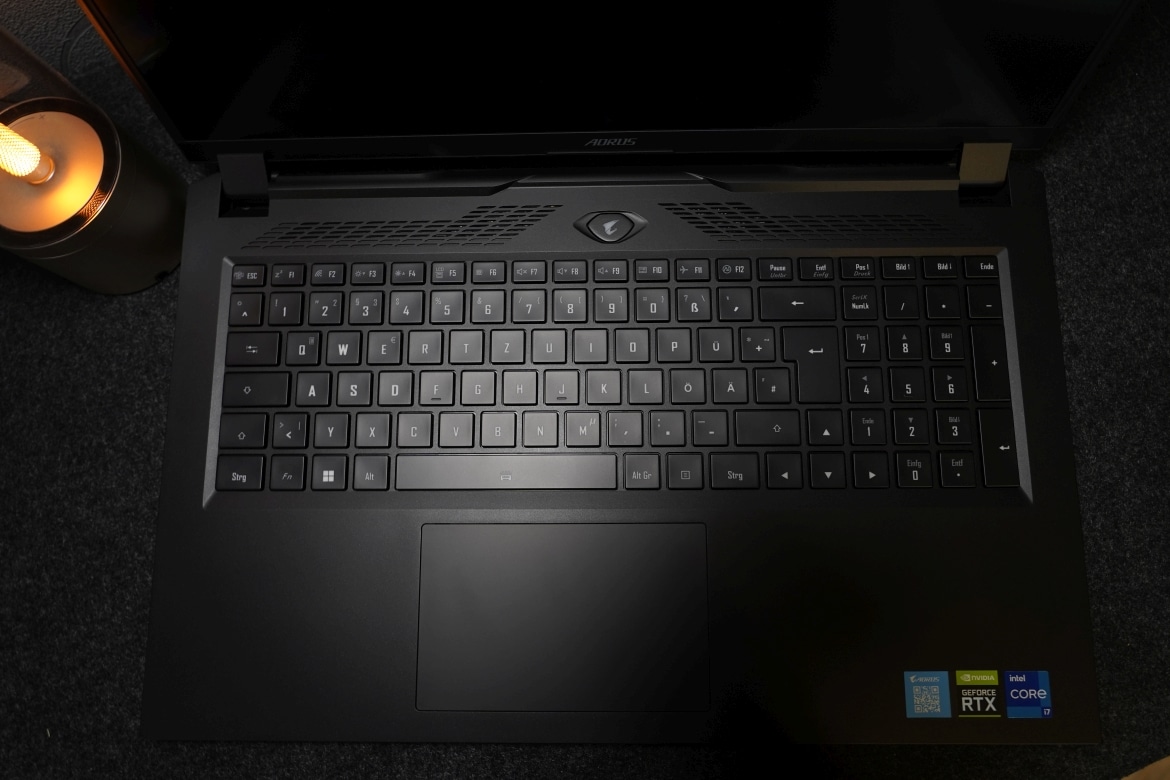 Für die Grafikberechnung kommt eine GeForce RTX 3070 Ti Laptop von Nvidia mit 8 GB GDDR6-RAM und einer maximalen TGP von 130 Watt zum Einsatz. Hinzu gesellen sich 16 GB DDR4-3200-Arbeitsspeicher im Dual-Channel-Betrieb und eine schnelle NVMe-SSD aus dem Hause Gigabyte mit einer Kapazität von 1 TB.