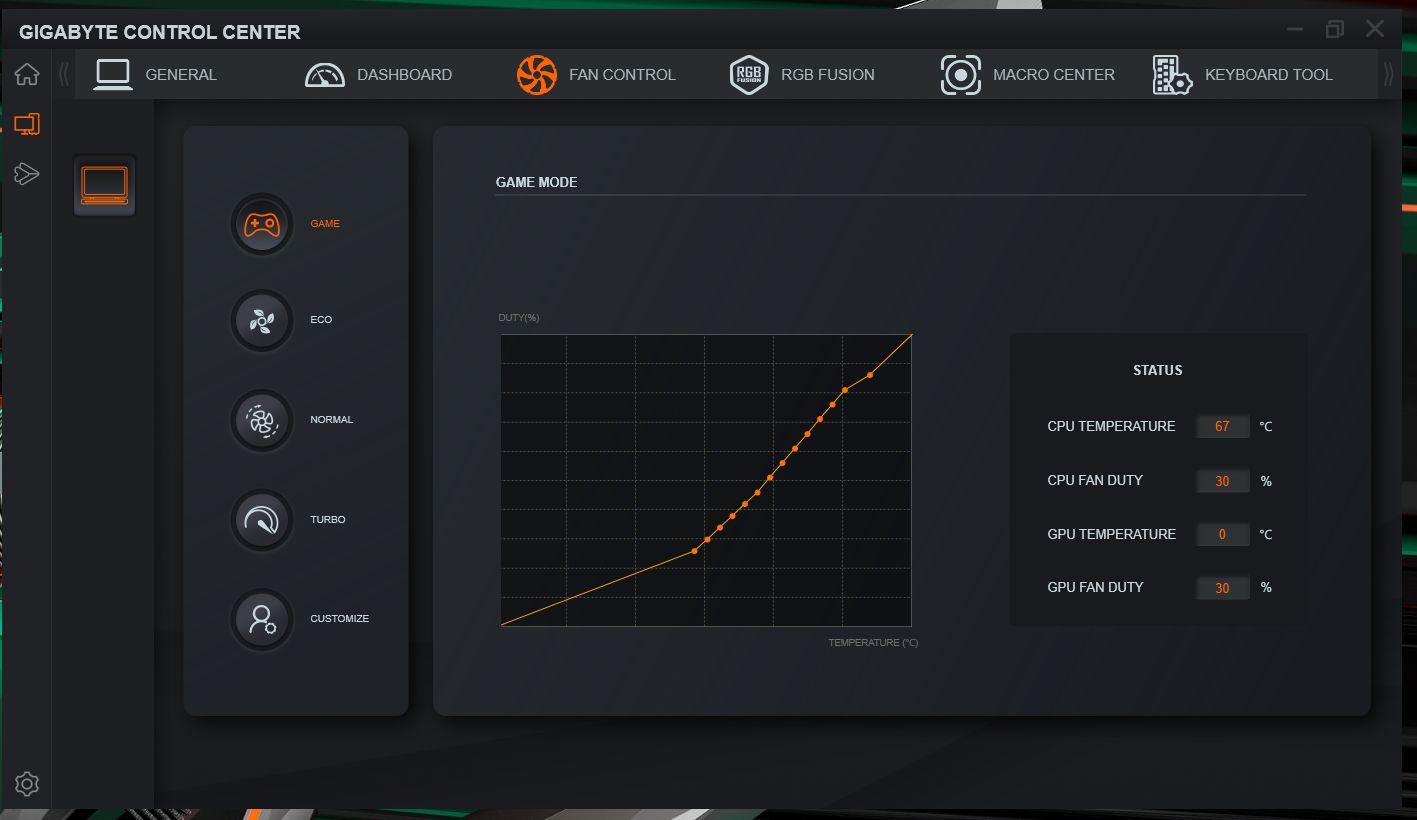 Außerdem kannst du jeden Modus weiter anpassen und beispielsweise die Beleuchtung der Tastatur, den Weißabgleich oder die Display-Helligkeit feinjustieren. Das Dashboard informiert zudem über die Temperaturen oder Drehzahlen der Lüfter. Ein praktisches und sauber strukturiertes Tool.