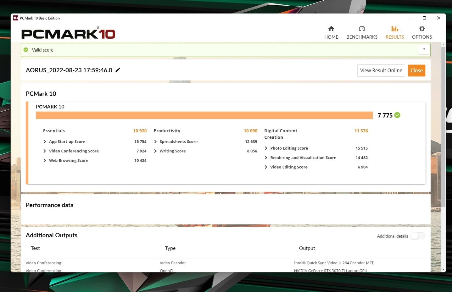 | PCMark 10 Gesamtwert | 7.775 Punkte |
