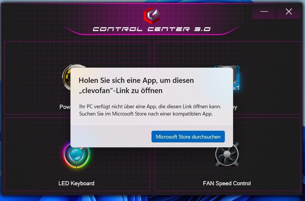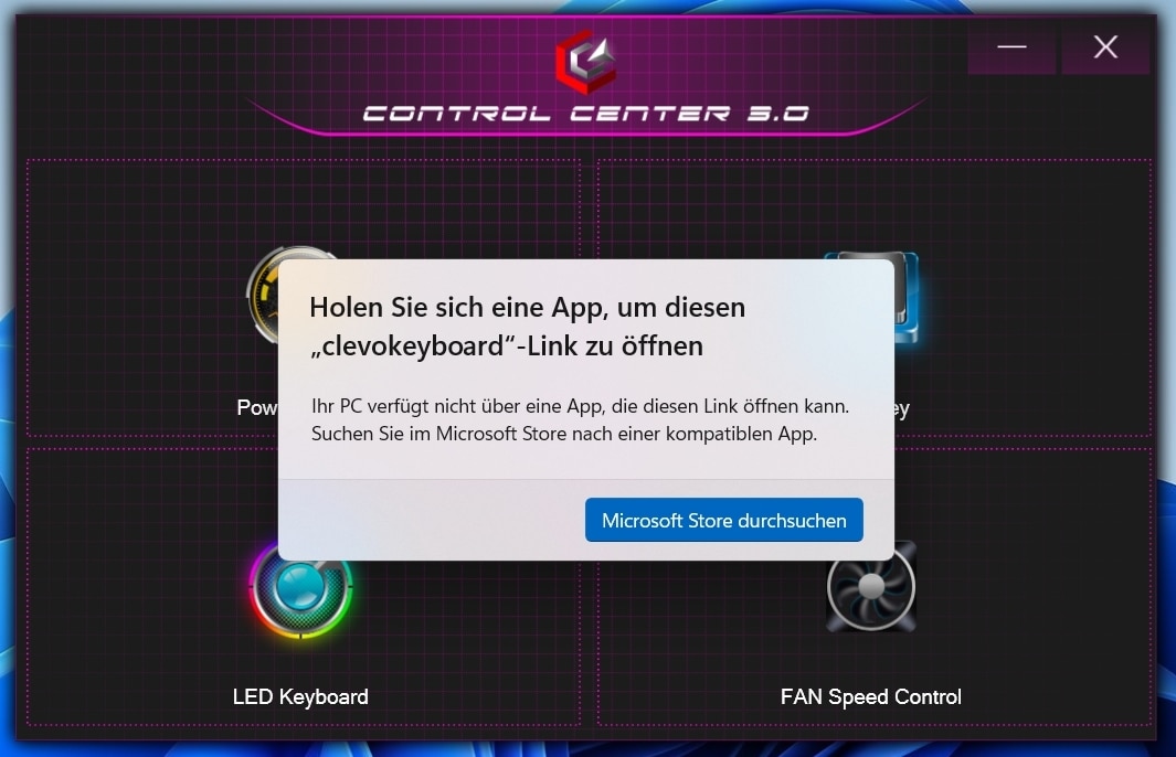 Gigabyte selbst stattet das Notebook mit einer Control Center-App aus, in der du theoretisch zwischen verschiedenen Betriebsmodi wie Leistung, Lautlos- oder Stromsparmodus wählen kannst. Die drei anderen Optionen Flexikey, LED Keyboard und FAN Speed Control funktionierten bei unserem Testmodell allerdings nicht, da hier eine entsprechend notwendige App fehlte.