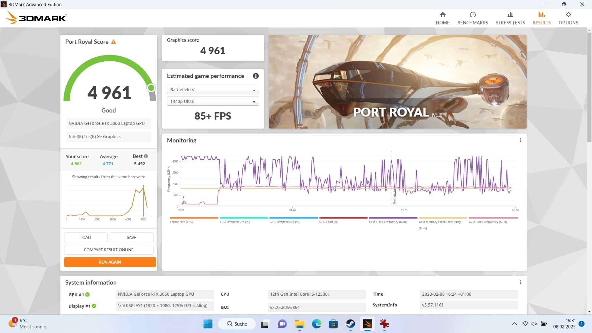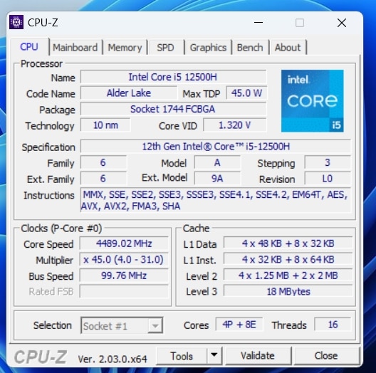 | Prozessor | Intel Core i5-12500H (12 Kerne, 16 Threads, 1.8 – 4.5 GHz) |
