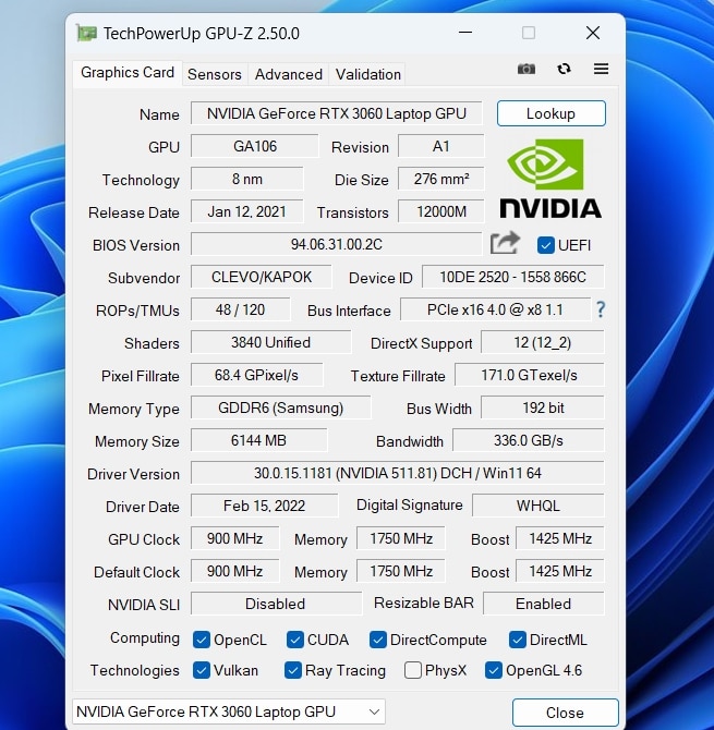 | Grafikleistung | Nvidia GeForce RTX 3060 (6GB GDDR6 VRAM); 75 W TDP |