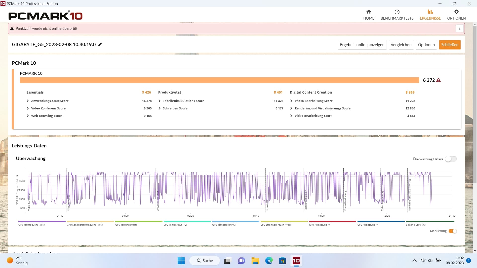 | PCMark 10 Gesamtwert | 6.372 Punkte |