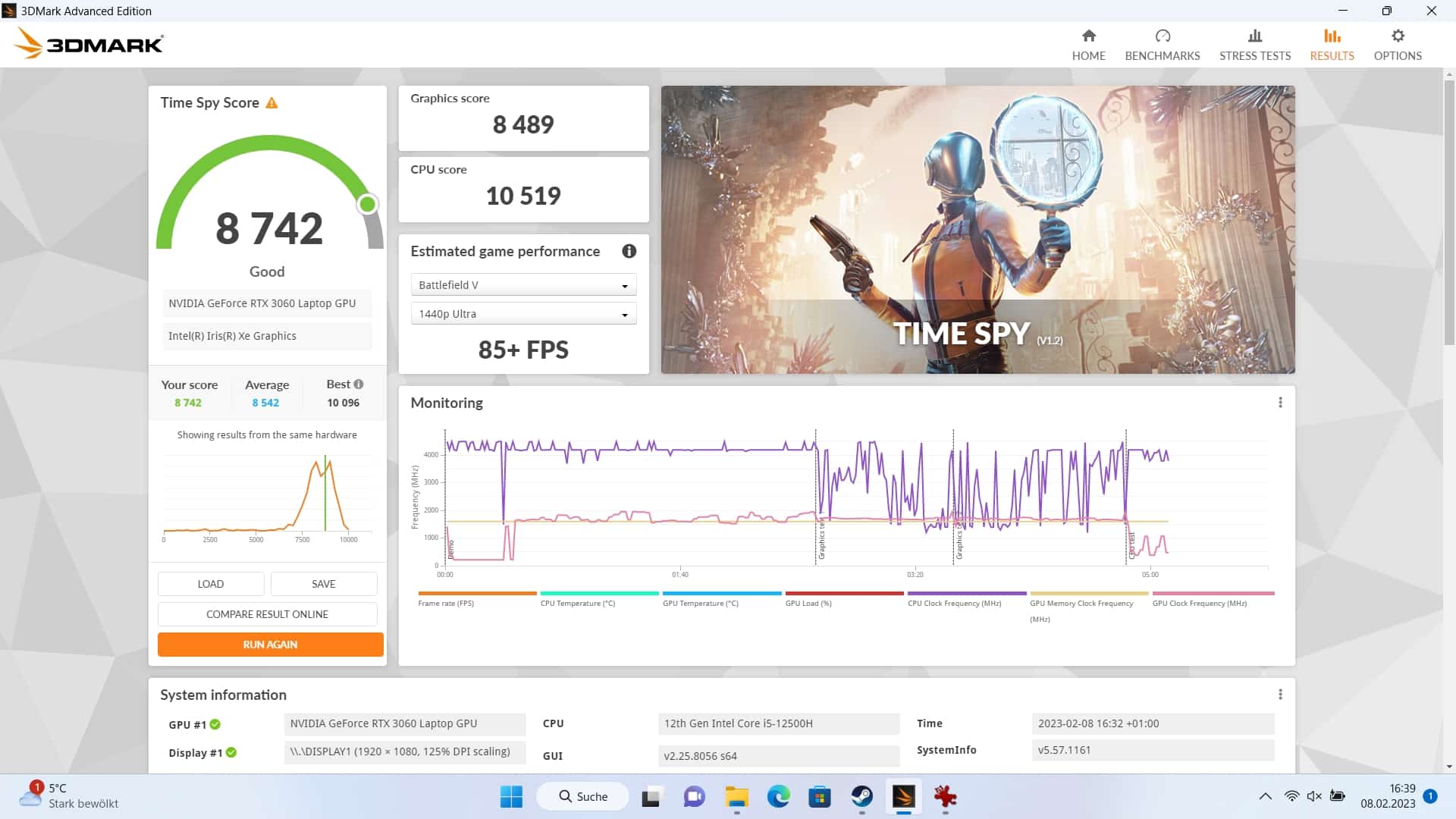 | Time Spy Gesamt | 8.742 Punkte |