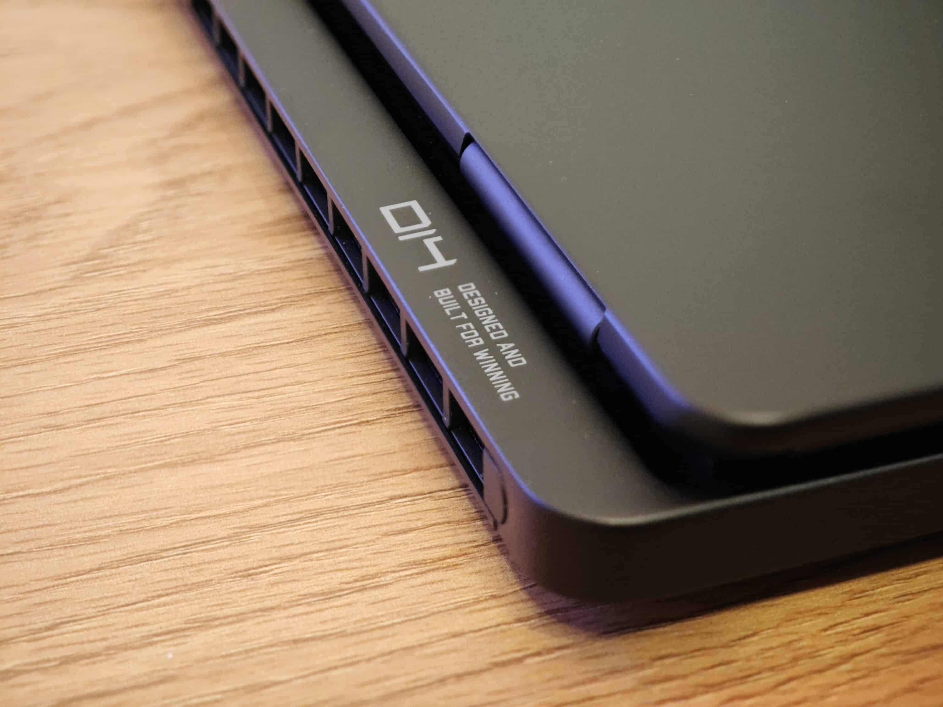Den Displaydeckel ziert der Omen-Schriftzug, während die Rückseite von den großzügigen Luftauslässen dominiert wird. Das Gehäuse in der Farbe Shadow Black Aluminium wartet dabei mit einer sandgestrahlten eloxierten Oberfläche auf, was sehr edel aussieht, allerdings sehr anfällig für Fingerabdrücke ist.