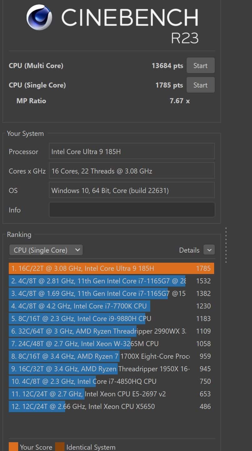 | Cinebench R23 Single Core | 1.785 Pkt. |