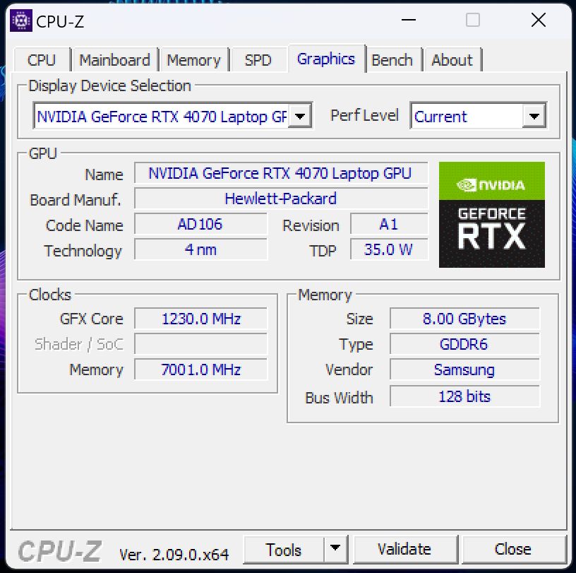 | Grafikleistung | Nvidia GeForce RTX 4070 (8GB GDDR6 VRAM); 65 W TDP |