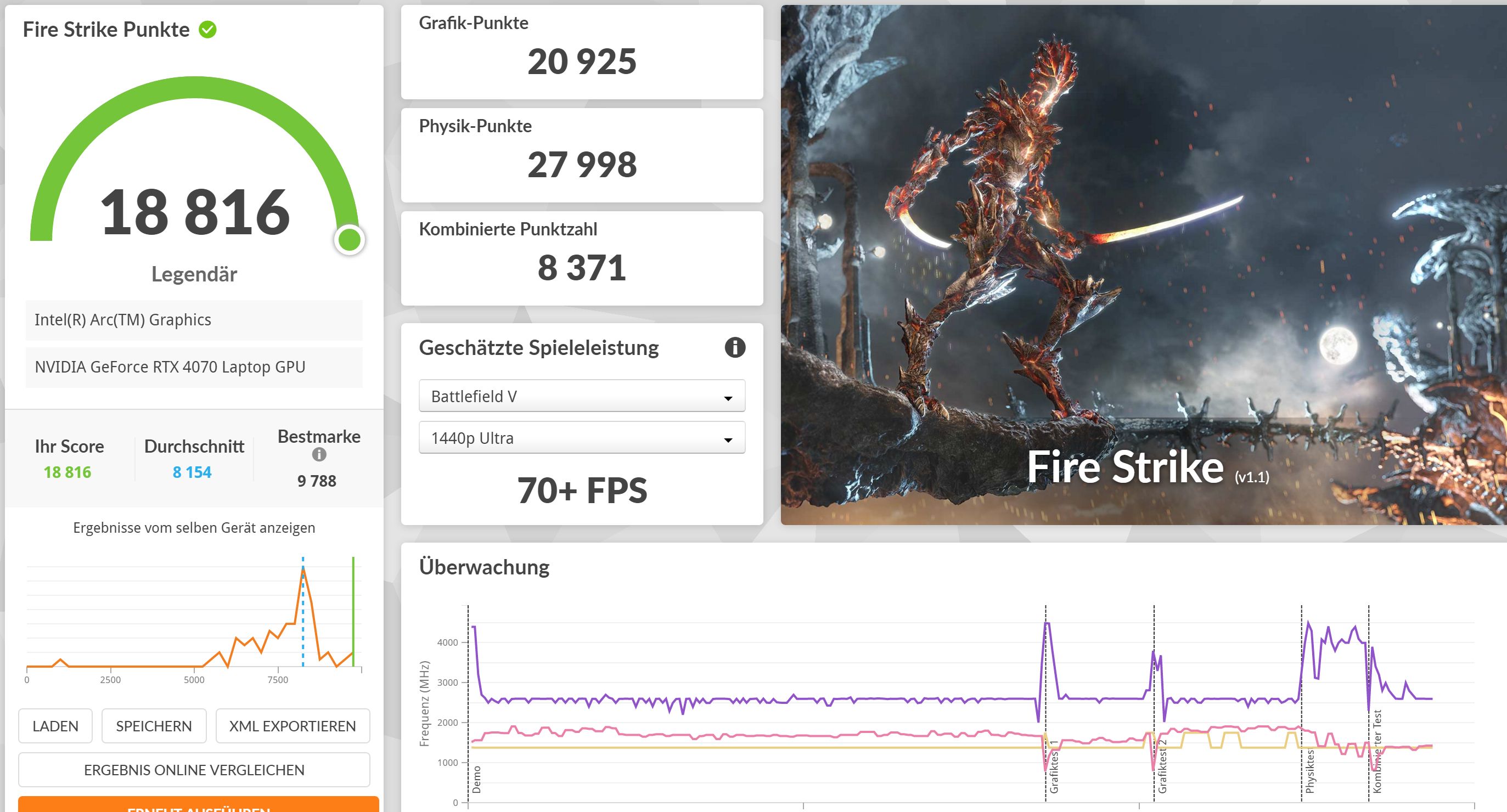 | Fire Strike Gesamt | 18.816 Pkt. |