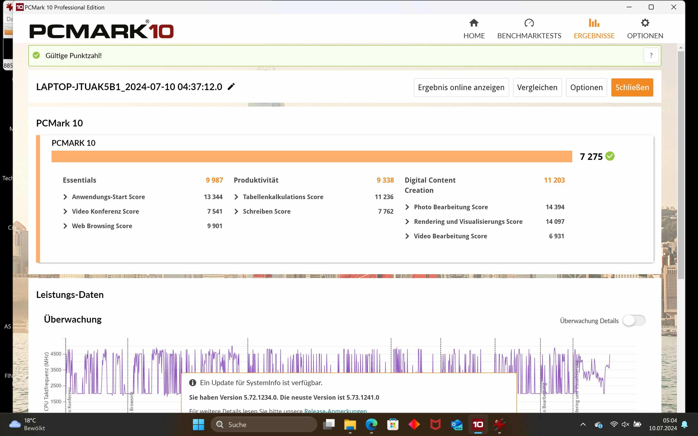 | PCMark 10 Essentials | 9.987 Pkt. |