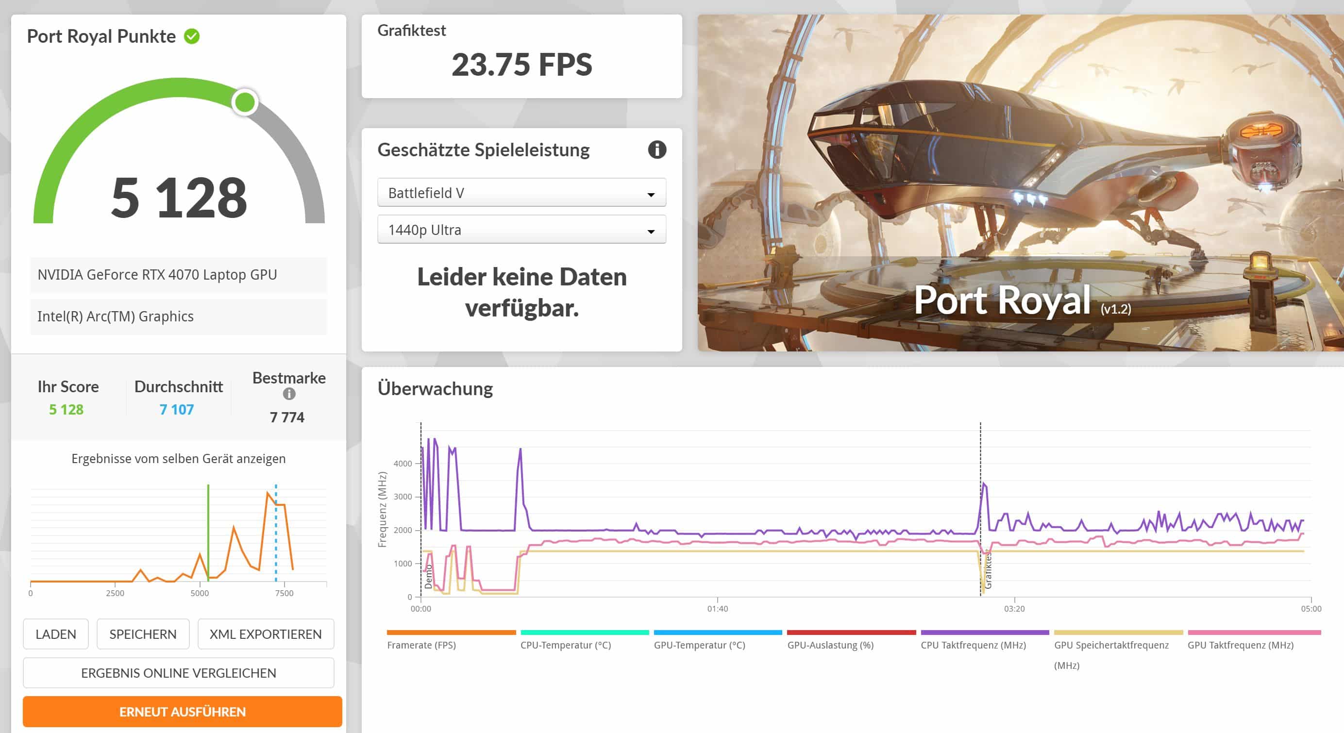 Dafür stattet man das Gerät mit dem aktuell schnellsten Intel-Chip der Meteor Lake-Generation, 32 GByte an Arbeitsspeicher und einer 2 TB SSD aus, was in Kombination für eine starke Systemleistung sorgt. Die RTX 4070 ist allerdings mit 65 Watt TDP deutlich beschnitten, was sich in der Spiele-Leistung dann auch klar zeigt.