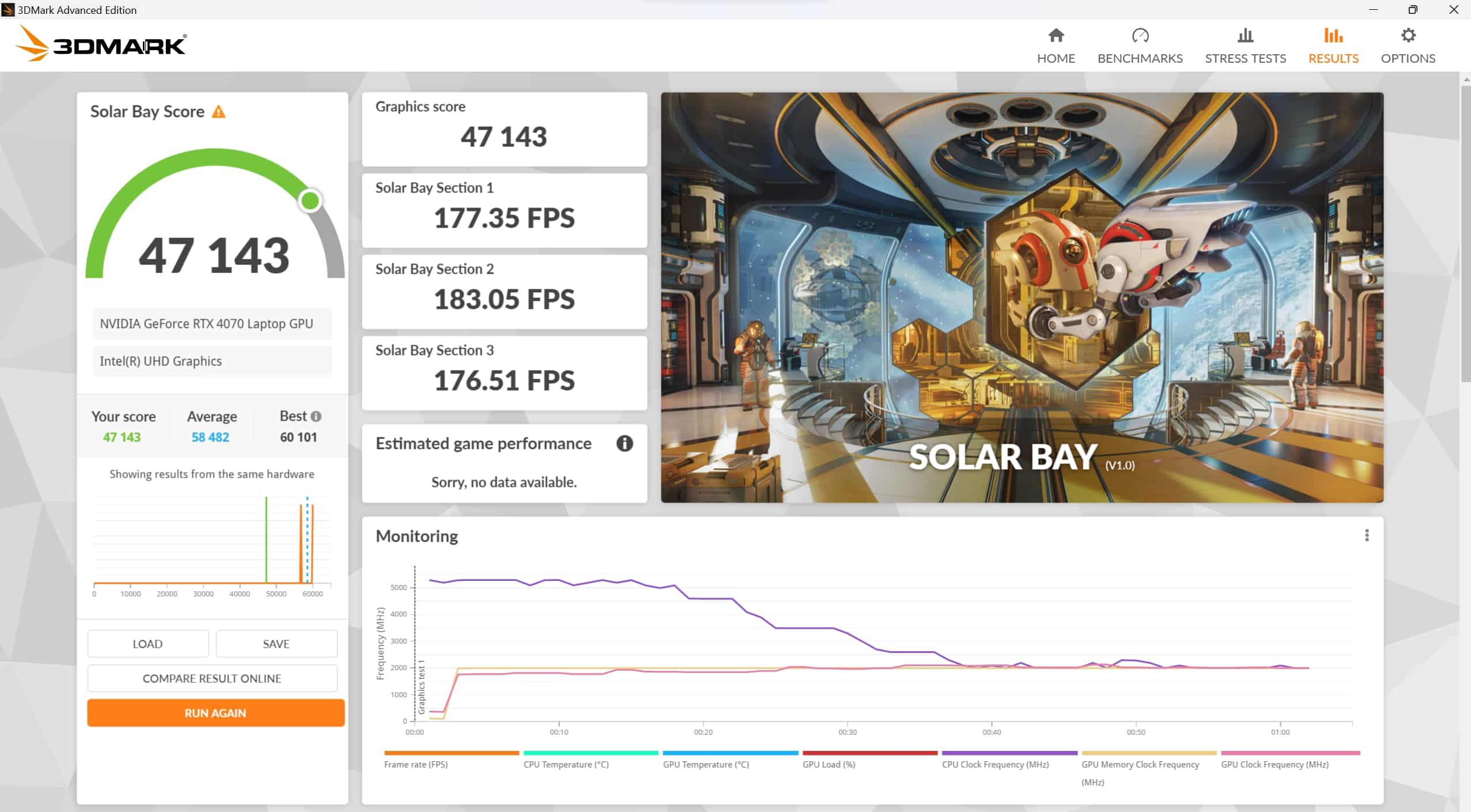 Dennoch positioniert sich das HP-Notebook unterhalb der meisten RTX 4070 Mobile-GPUs der Konkurrenten und setzt sich nur minimal vor die besten RTX 4060-Laptops, was etwas schade ist.