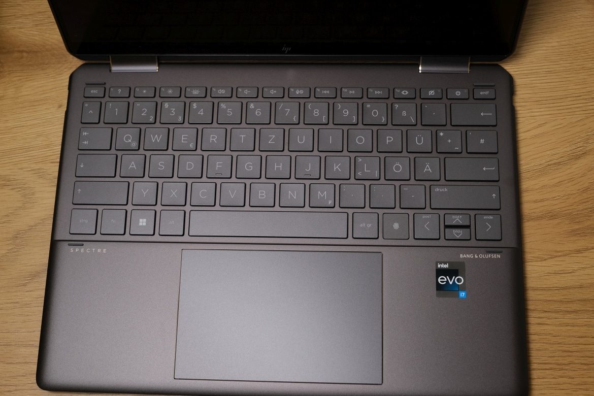 Keine Veränderungen gibt es hingegen bei der Tastatur des HP Spectre x360 14 2023. Diese liegt ebenfalls auf einem sehr hohen Niveau und erlaubt ein schnelles und präzises Tippen beziehungsweise Schreiben.