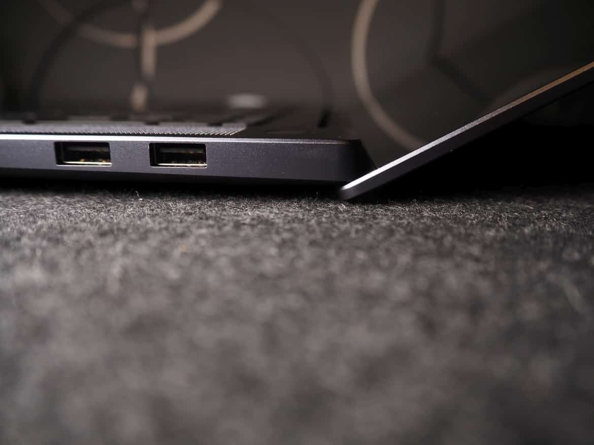 Die für ein Notebook dieser Größe stimmige Auswahl an Anschlüssen habe ich bereits angesprochen. Dass aufgrund der kompakten Bauweise ein Ethernet-Port durch Abwesenheit glänzt, lässt sich in meinen Augen verkraften. Lediglich das Fehlen eines SD-Kartenlos schmerzt ein wenig.