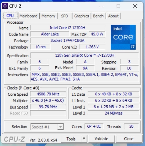 | Prozessor | Intel Core i7 12700H (14 Kerne, 20 Threads, 2.3 – 4.7 GHz) |