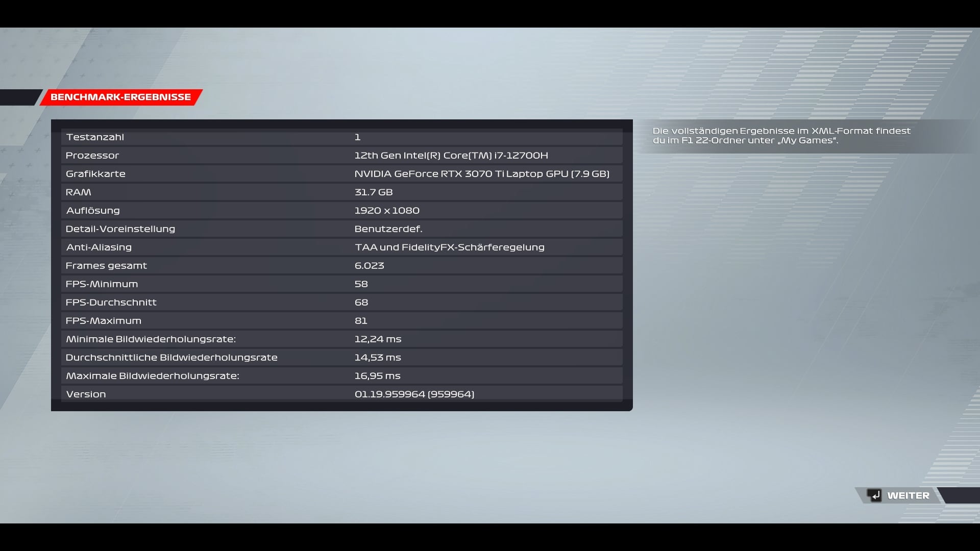 | F1 22 (Max Setting; RT Max.) – 1080p | 68 fps (Durchschnitt) |