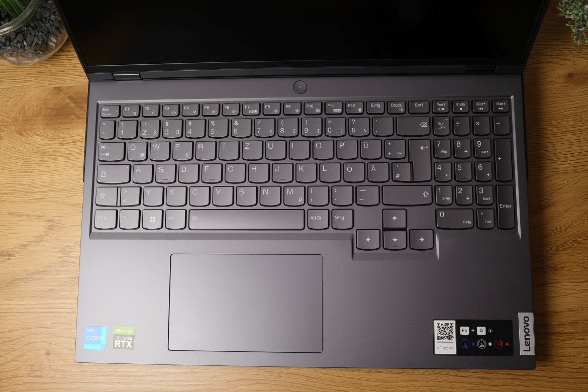 Auf sehr gutem Niveau liegen Tastatur und Trackpad des Lenovo Legion 5 Pro und das, obwohl die einzelnen Tasten einen vergleichsweise kurzen Hubweg bieten. Das gleicht der Laptop aber durch einen präzisen Auslösepunkt und eine angenehm griffige Oberfläche problemlos wieder aus.