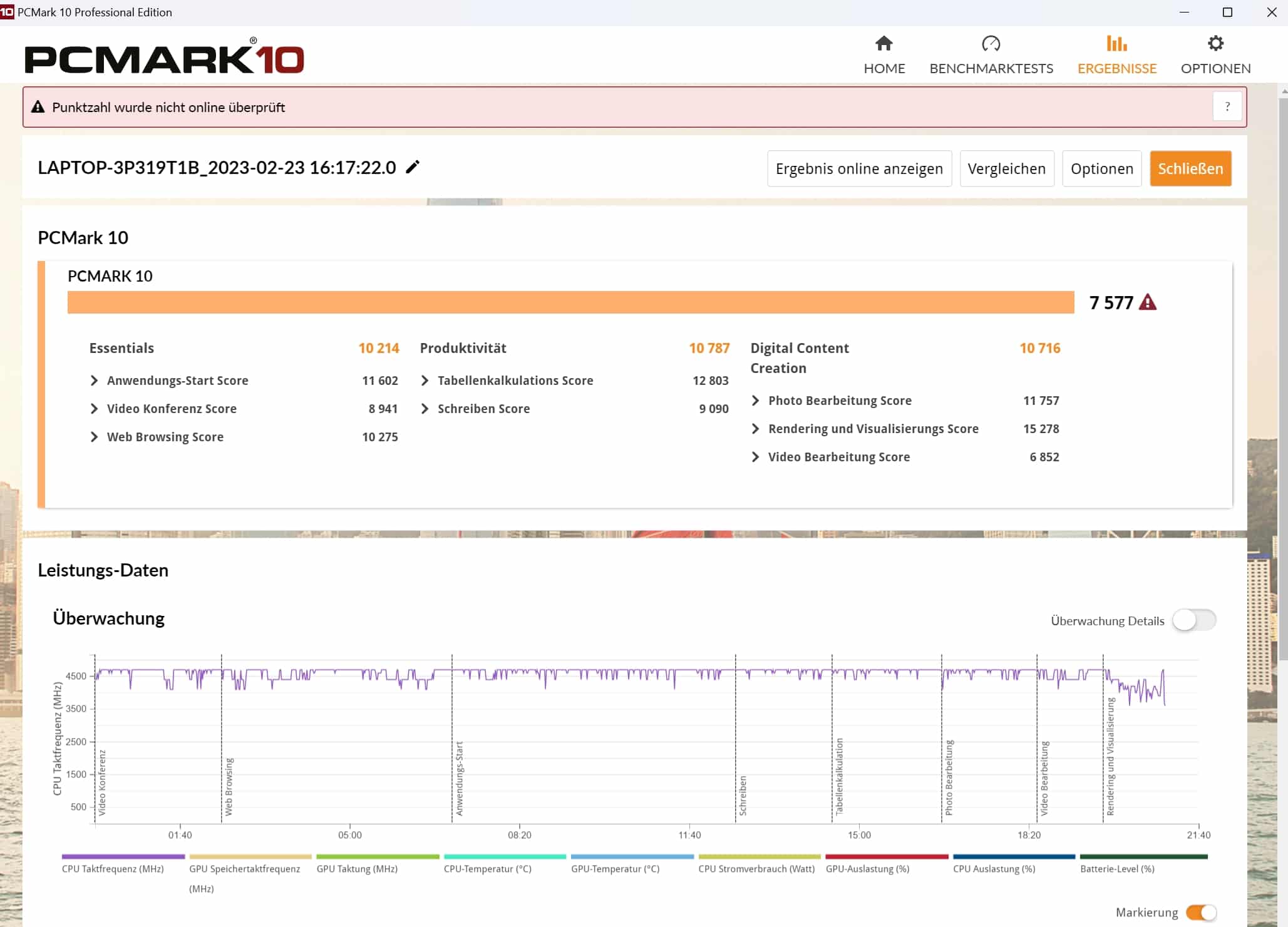Am Ende springen über 10.000 Punkte in allen drei Sub-Kategorien heraus, was schlicht beeindruckend ist und zeigt, dass dieses Notebook mit absolut allen Anforderungen gleichermaßen gut zurecht kommt. Das resultiert in einem hervorragenden Gesamtwert von 7.577 Punkten.