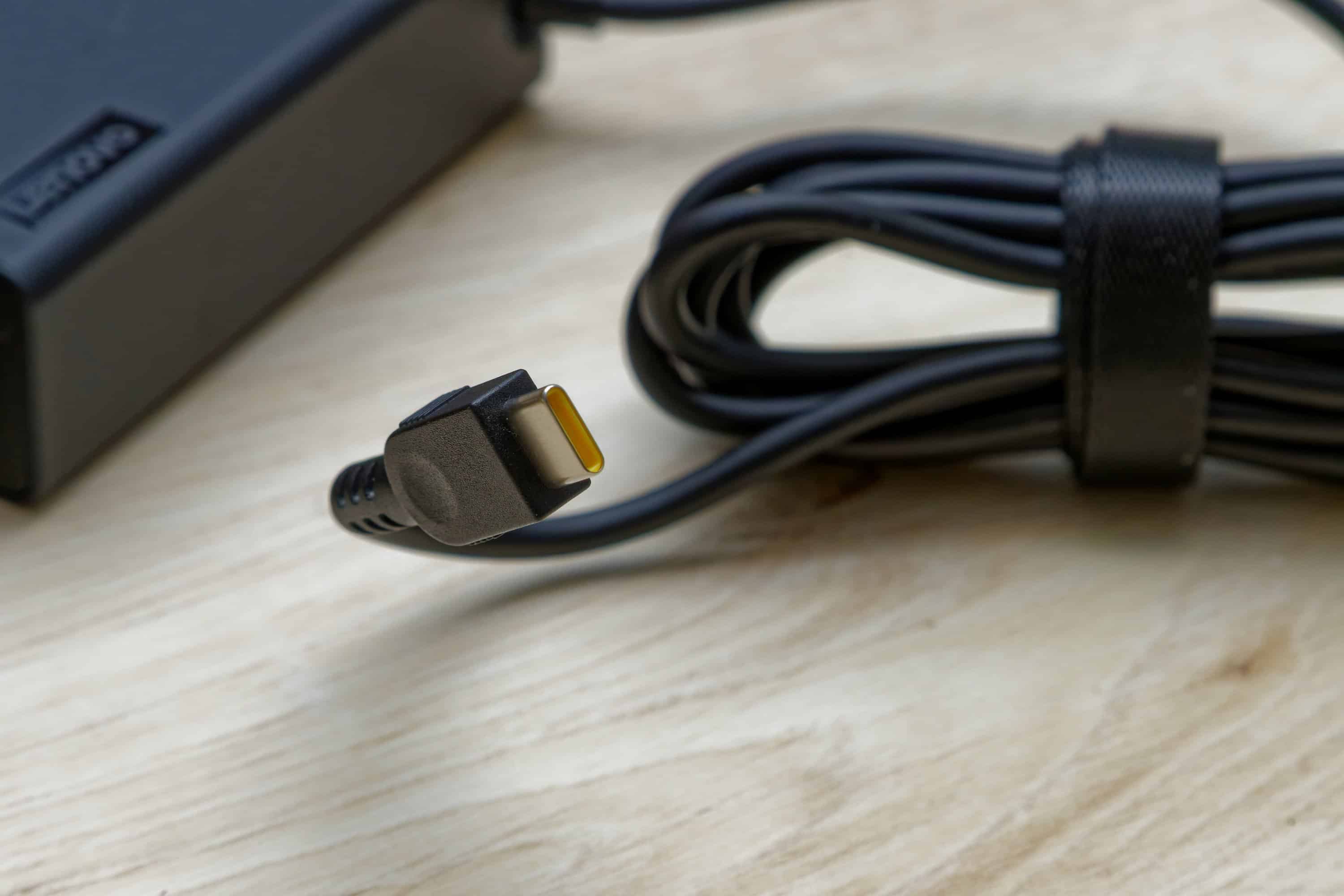 Das Kunststoffgehäuse des Netzteils besteht laut Lenovo zu 90% aus recycletem Kunststoff.
