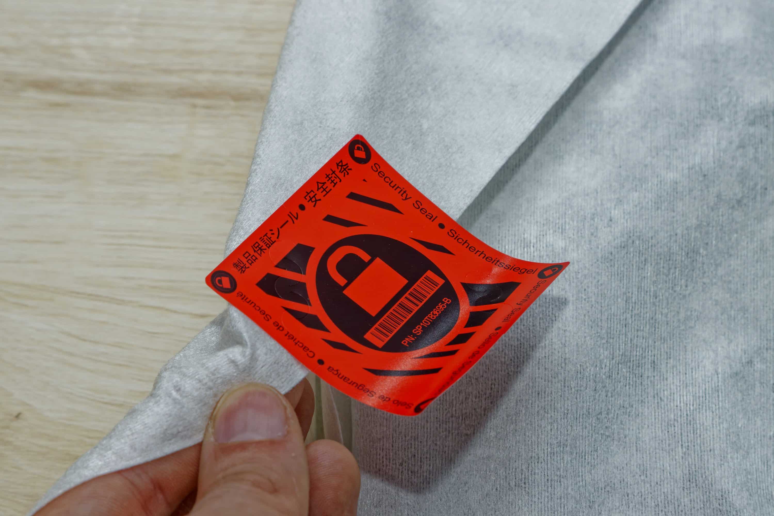 Der Laptop ist zum zusätzlichen Schutz in einer stoffartigen Hülle aus Bambusfasern verpackt, die man prinzipiell auch weiternutzen kann, um den Laptop zu schützen, wenn man ihn zusammen mit anderen Teilen in eine Tasche steckt. Diese Hülle ersetzt aber selbst keine Laptoptasche – dafür ist sie zu dünn. Das Siegel, mit dem die Tasche verschlossen ist, ist jedoch lächerlich. Das hat sich schon halb gelöst, bevor ich es angefasst habe und es ging gänzlich schadfrei herunter, was dem Konzept eines Siegels irgendwie widerspricht.