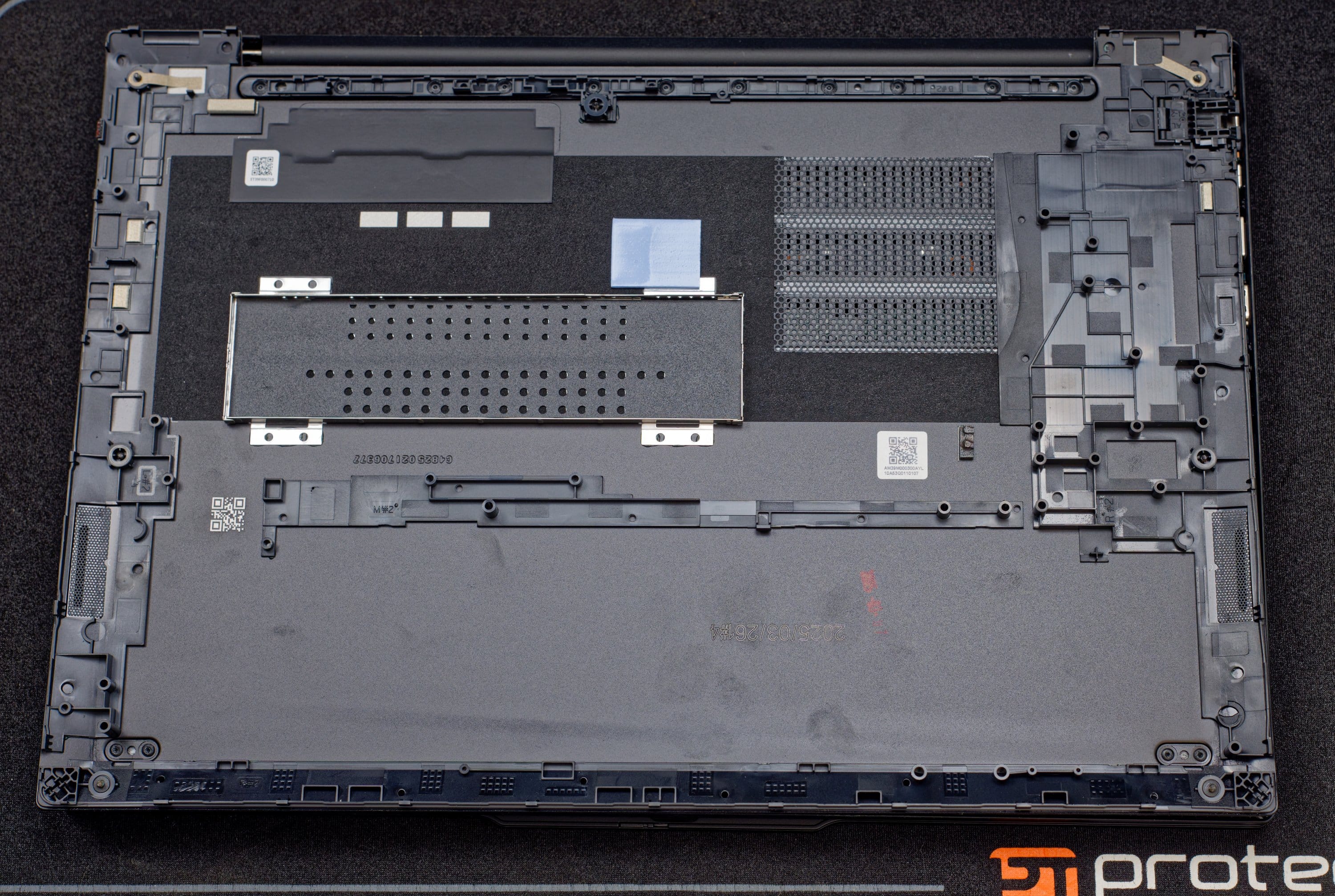 Um den Gehäuseboden also abnehmen zu können, muss man den Boden an einer Stelle etwas aufhebeln, was für mich im Scharnier-Bereich am besten geklappt hat. Dann muss man mit einem dünnen Kunststuffplättchen rund ums Gehäuse gehen und die Clips nach und nach öffnen. So intuitiv wie bei älteren Thinkpads geht das also nicht, aber der Prozess ist vergleichbar zum im Lenovo Thinkpad E16 G2 Test oft herangezogenen Vergleichsmodell E590.