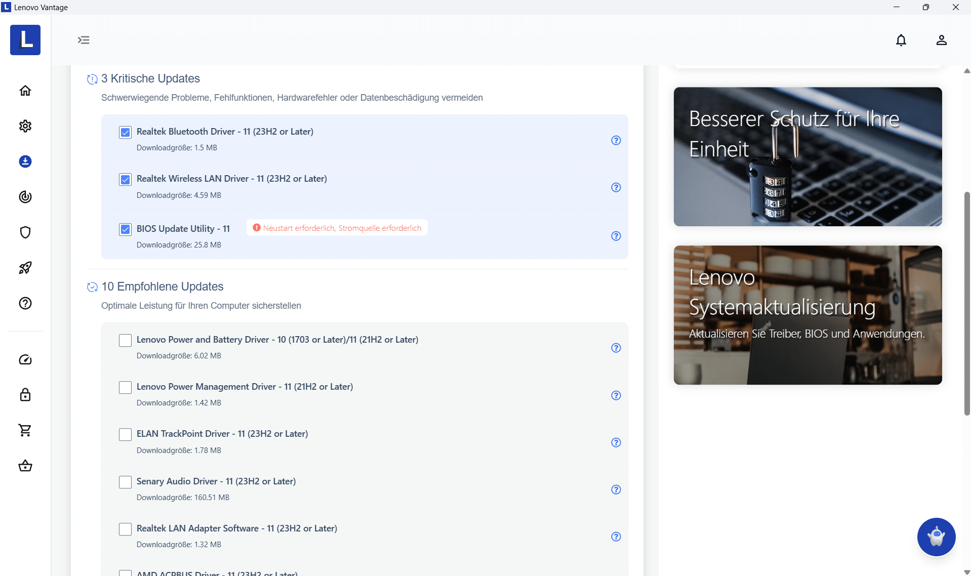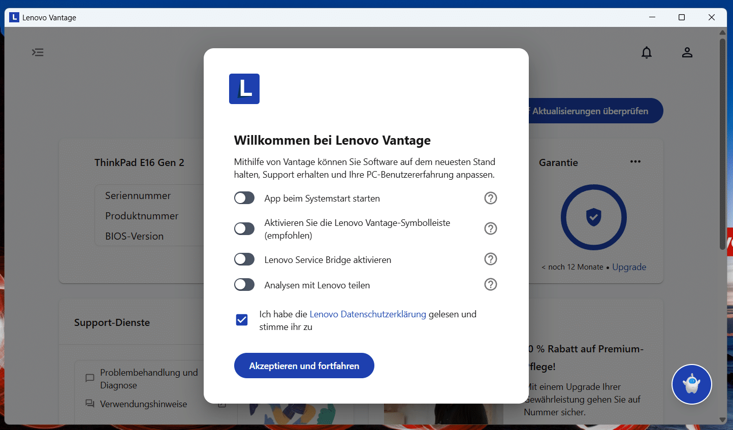 - Lenovo Now kann man vergessen, aber Lenovo Vantage ist ein sinnvolles Tool.