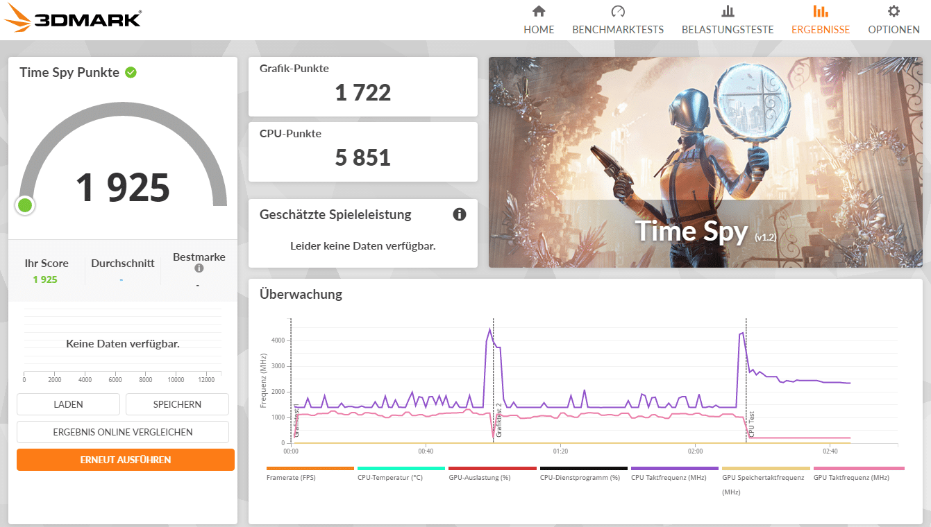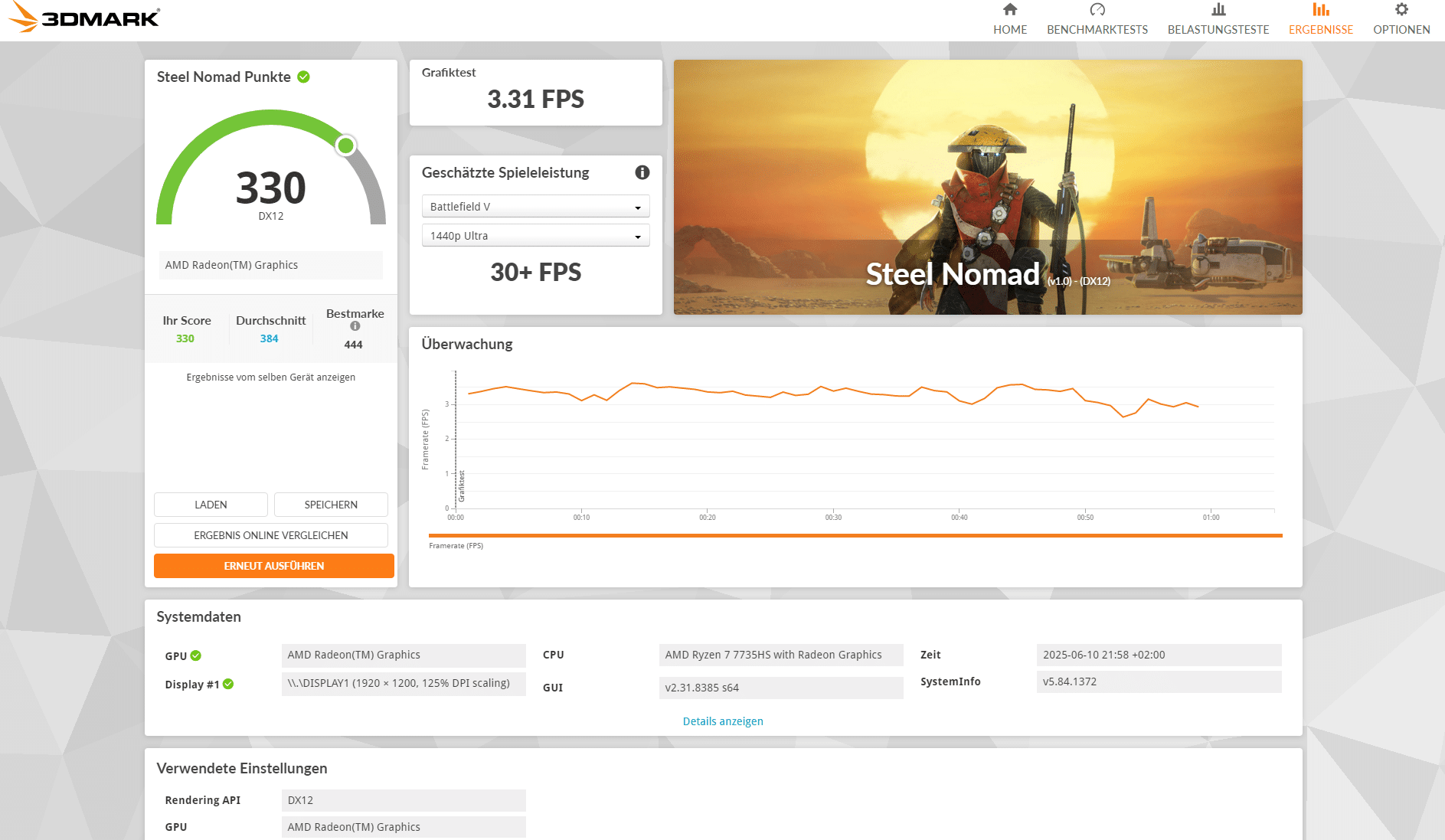 Als Test habe ich sowohl 3DMark Time Spy als auch Steel Nomad gewählt. Ansonsten nur Final Fantasy XV getestet als halbwegs grafikintensives Spiel, wennn es hier auch noch intensivere Titel gibt, die ich der integrierten Grafikkarte jedoch nicht zumuten möchte.
