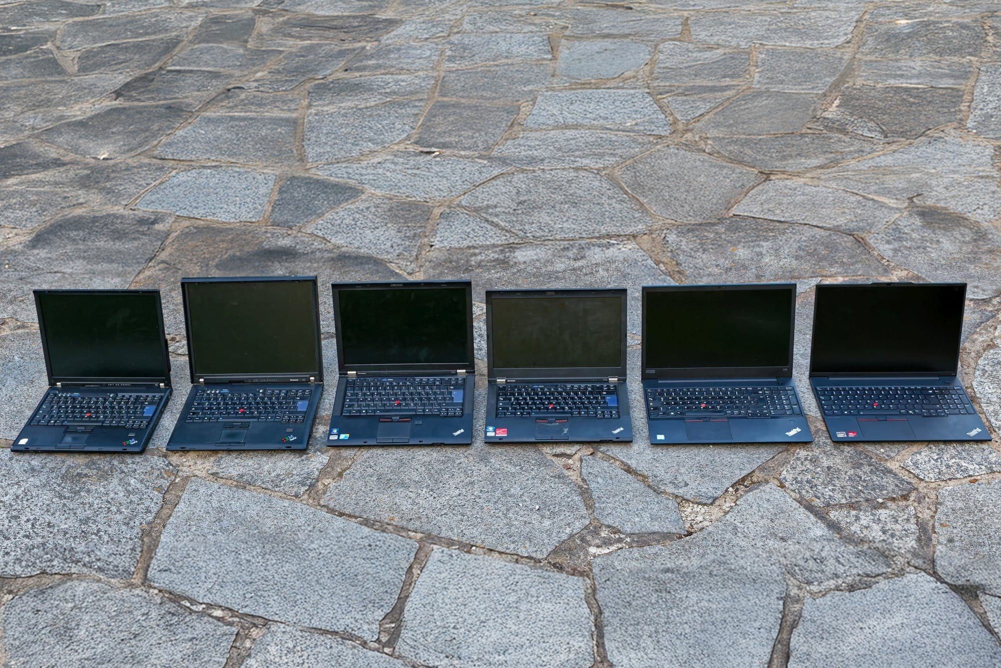 Das Design eines Thinkpads ist… wenig überraschend. Und so reiht sich auch das Lenovo Thinkpad E16 G2 aus diesem Test in eine Reihe ein, die schwer auf den ersten Blick auseinander zu halten ist. Hier sind Geräte aus den letzten 20 Jahren abgebildet, aber die Gestaltungsmerkmale gehen noch deutlich weiter zurück.