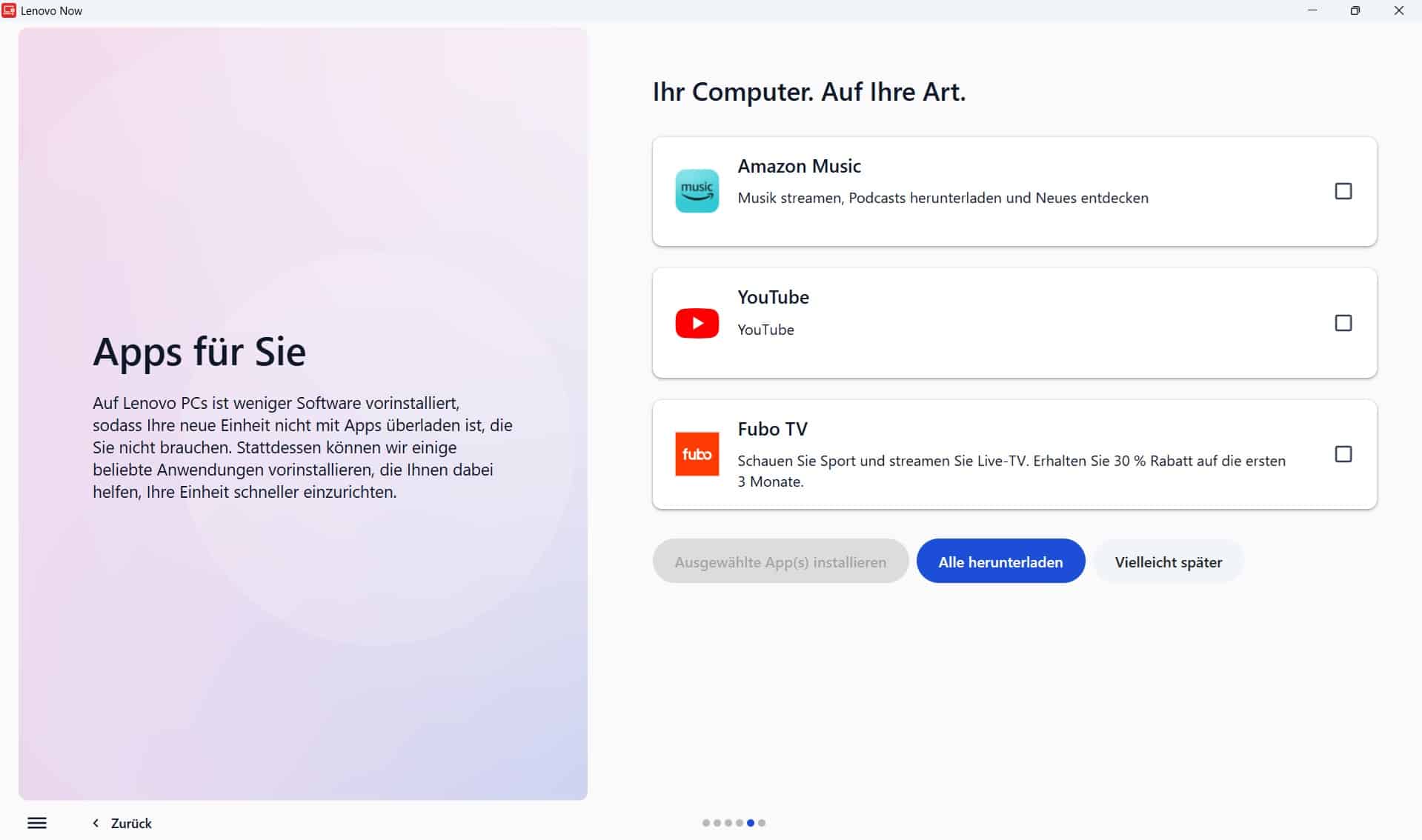 Was Bloatware angeht, ist Lenovo zurückhaltend. Lediglich McAfee ist installiert und läuft – lässt sich aber recht einfach deinstallieren. Davon abgesehen gibt es nur ein paar Lenovo-eigene Programme. „Lenovo Now“ kann getrost ignoriert werden – damit wollen sie einem nur weitere Software oder Abos verkaufen. Auch das ist bei Bedarf einfach zu deinstallieren.