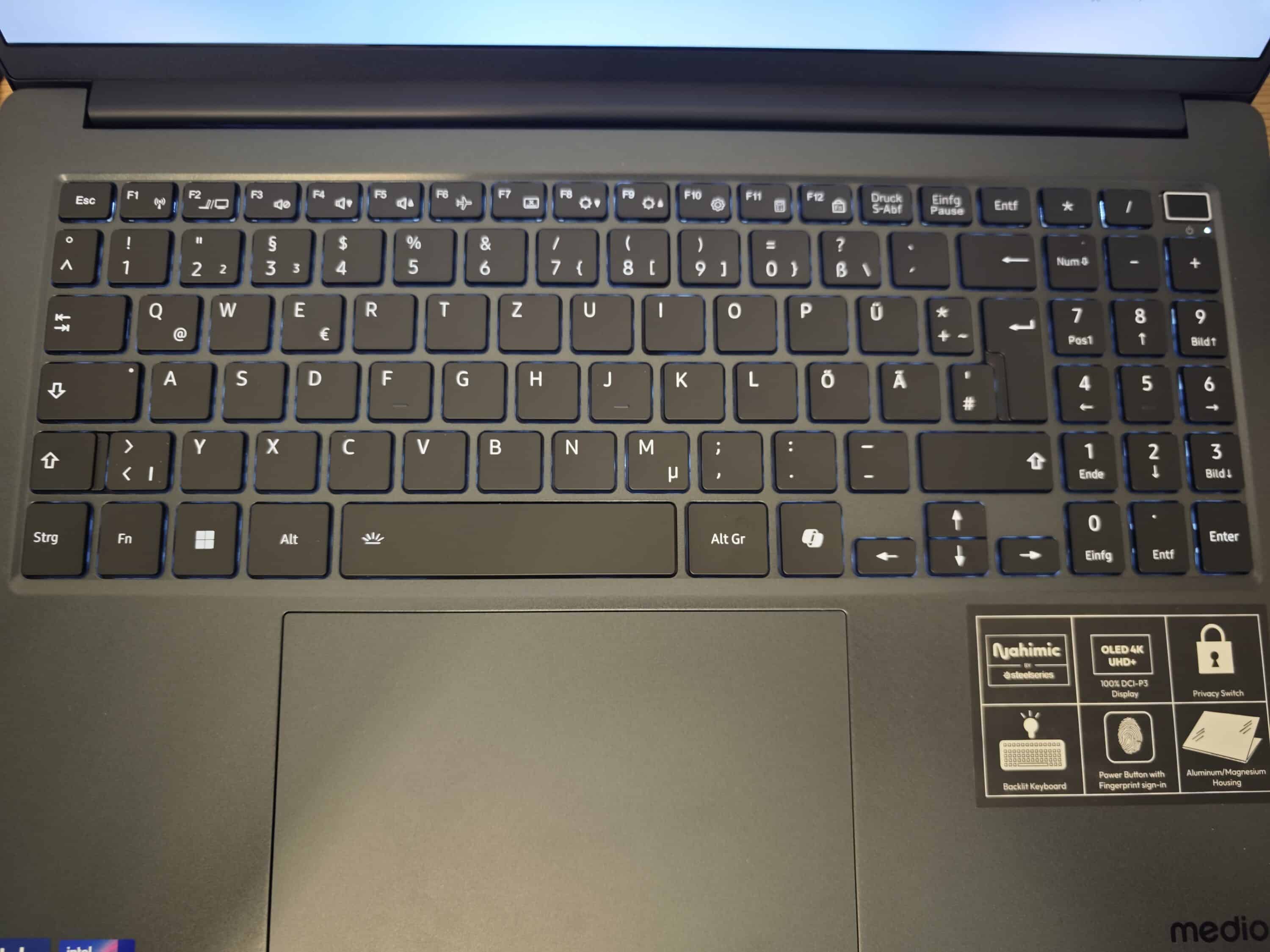 Auch die Ausstattung geht, gemessen am Preis, absolut in Ordnung. Allerdings gibt es Laptops mit vergleichbarer Hardware schon zu einem günstigeren Preis – wenn euch das OLED-Panel nicht wichtig sein sollte. Medion selbst bietet mit dem P10 ein vergleichbares Modell mit dedizierter GPU an, das bei der Grafikleistung deutlich die Nase vorn haben dürfte.