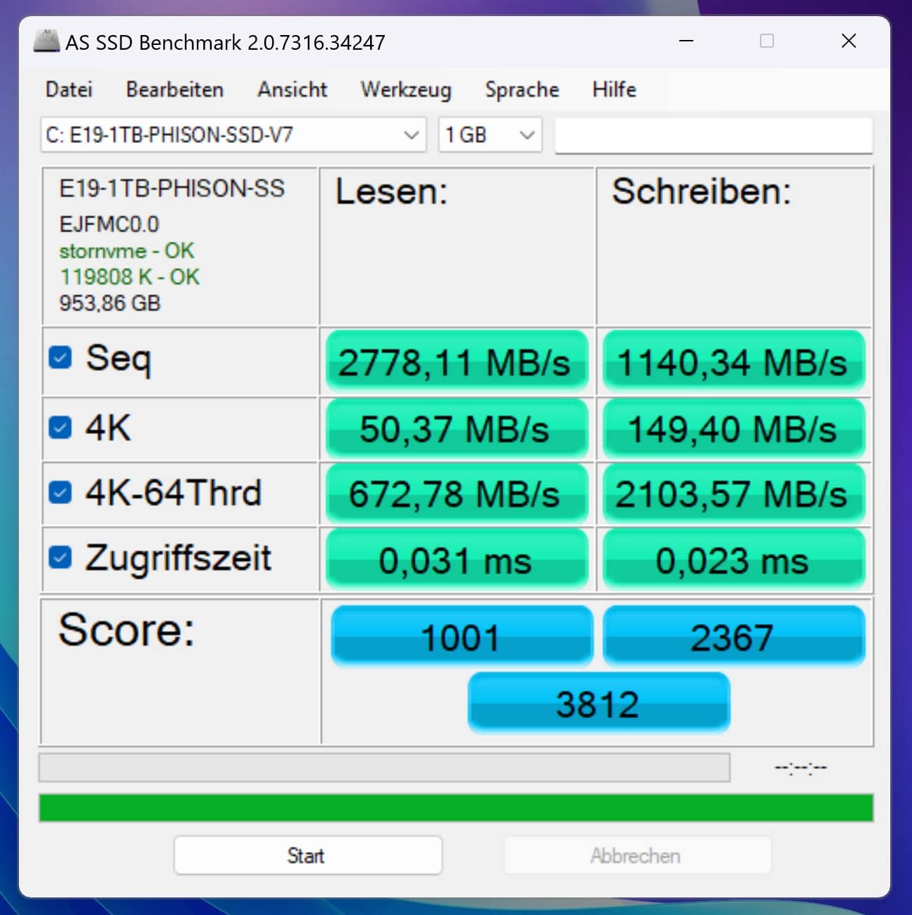 | Sequenziell | 2.778,11 MB/s | 1.140,34 MB/s |