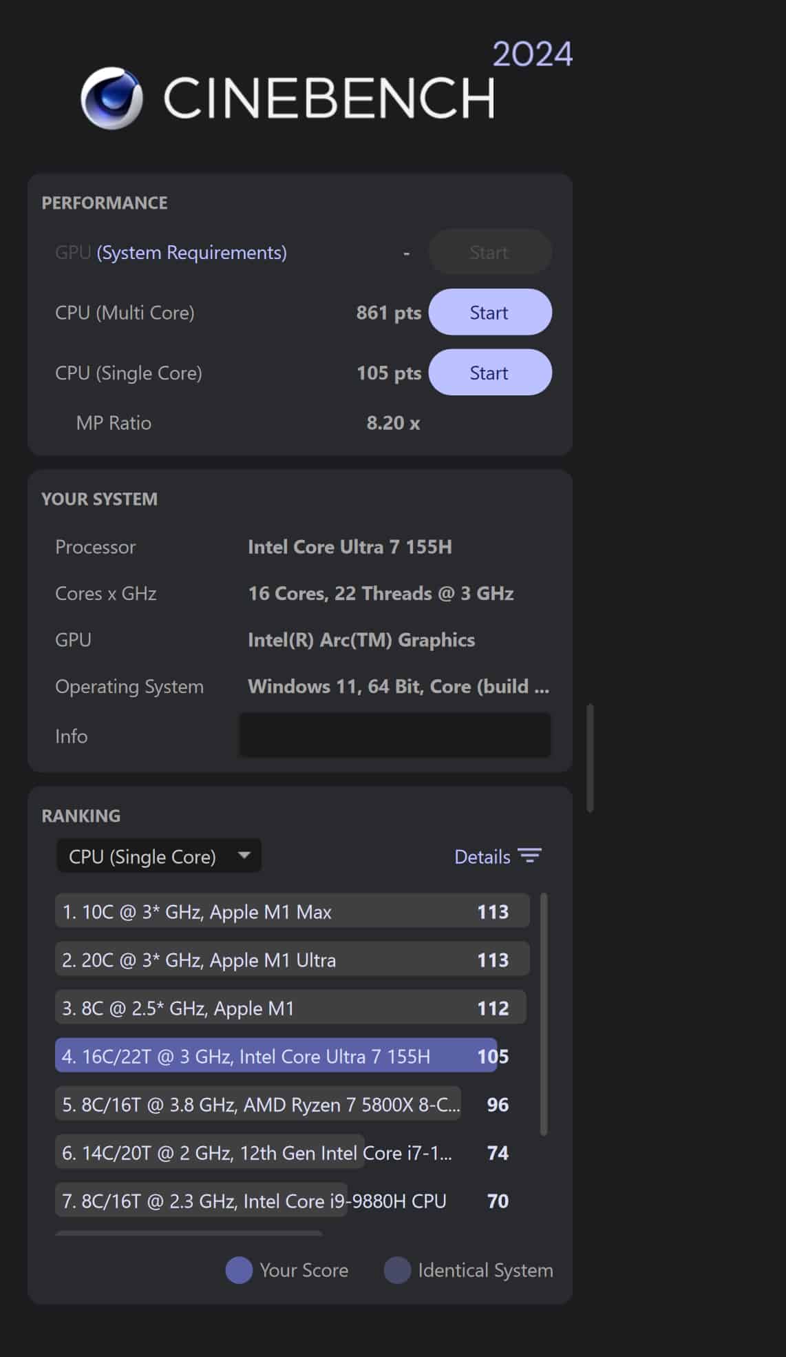 | Cinebench 2024 Multi Core | 861 Pkt. |