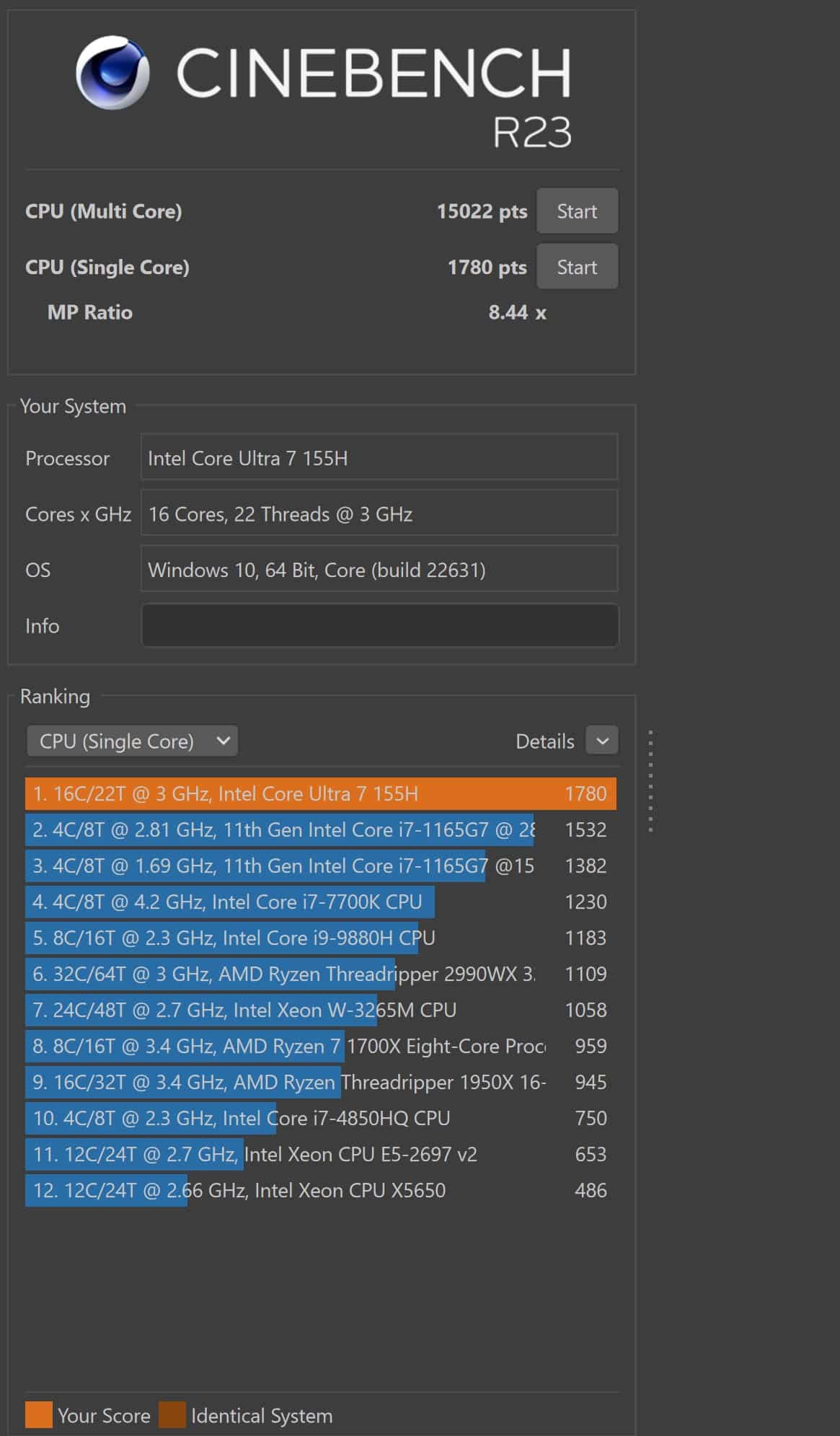 | Cinebench R23 Single Core | 1.780 Pkt. |