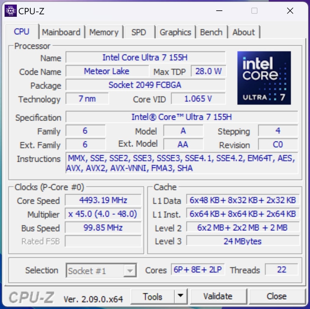 | Prozessor | Intel Core Ultra 7 155H (16 Kerne, 3.8 – 4.8 GHz); 28W TDP |