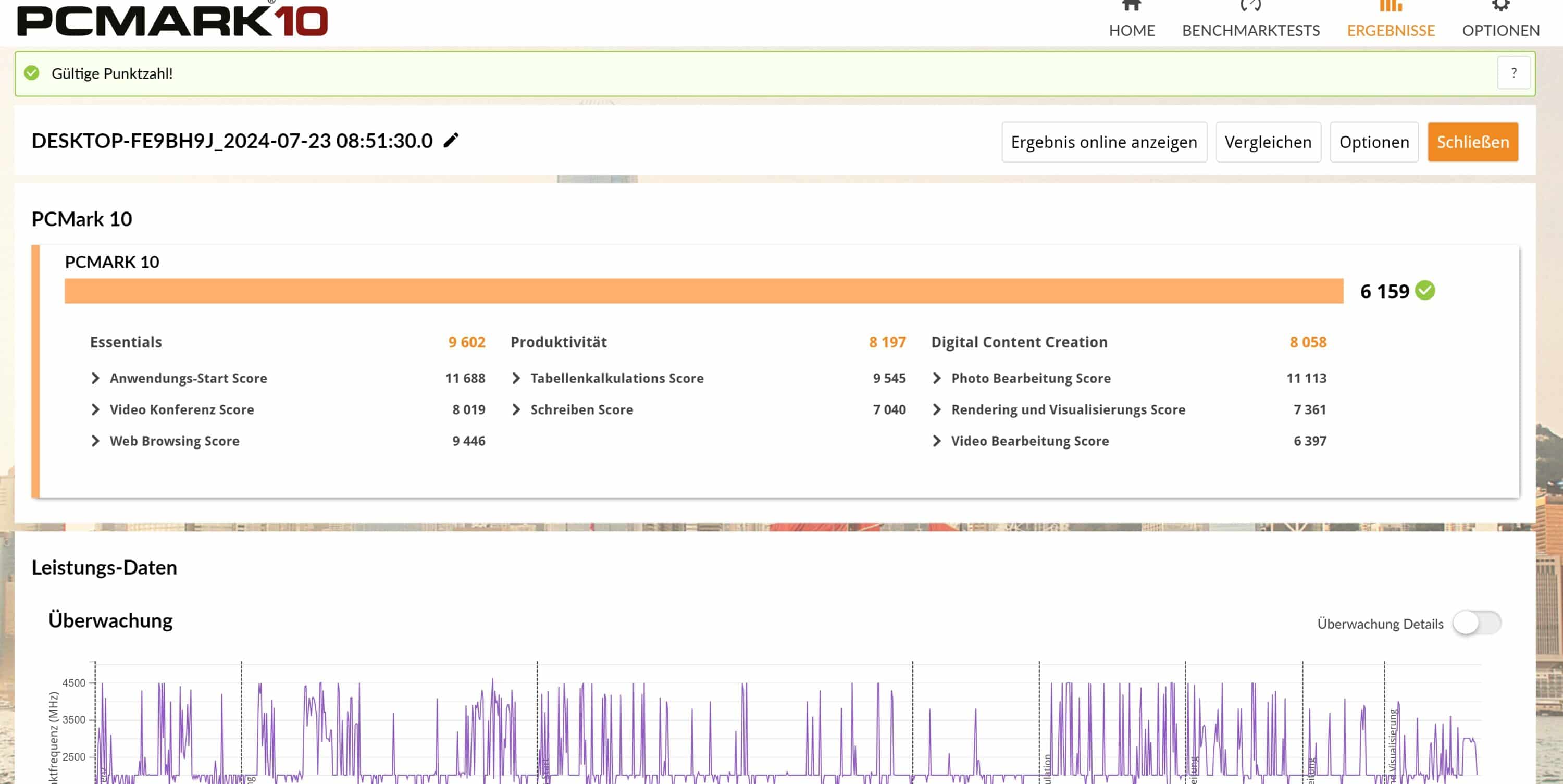 | PCMark 10 Gesamtwert | 6.159 Pkt. |