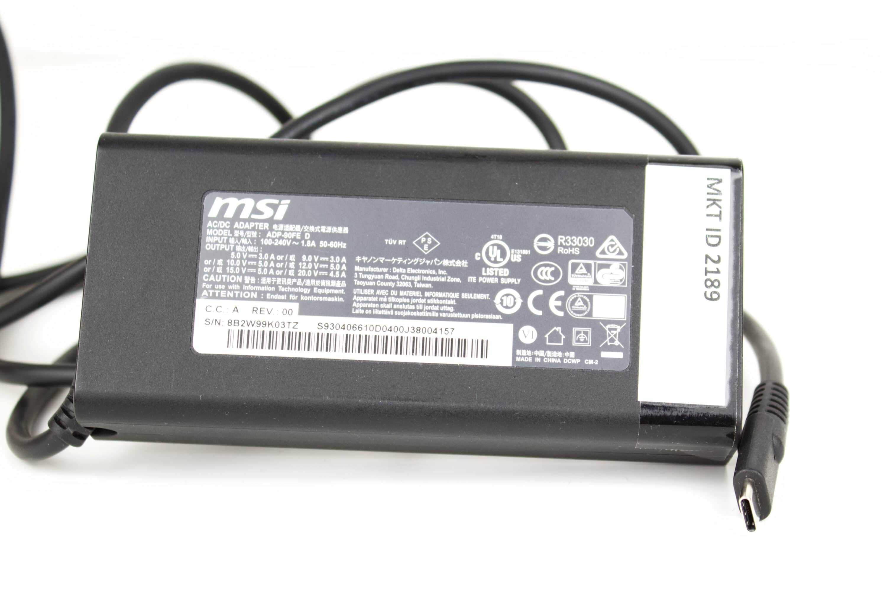 Das mitgelieferte Zubehör ist relativ umfangreich: Zum einen liegt dem Notebook ein 90-Watt-Netzteil mit USB-Typ-C Anschluss bei.