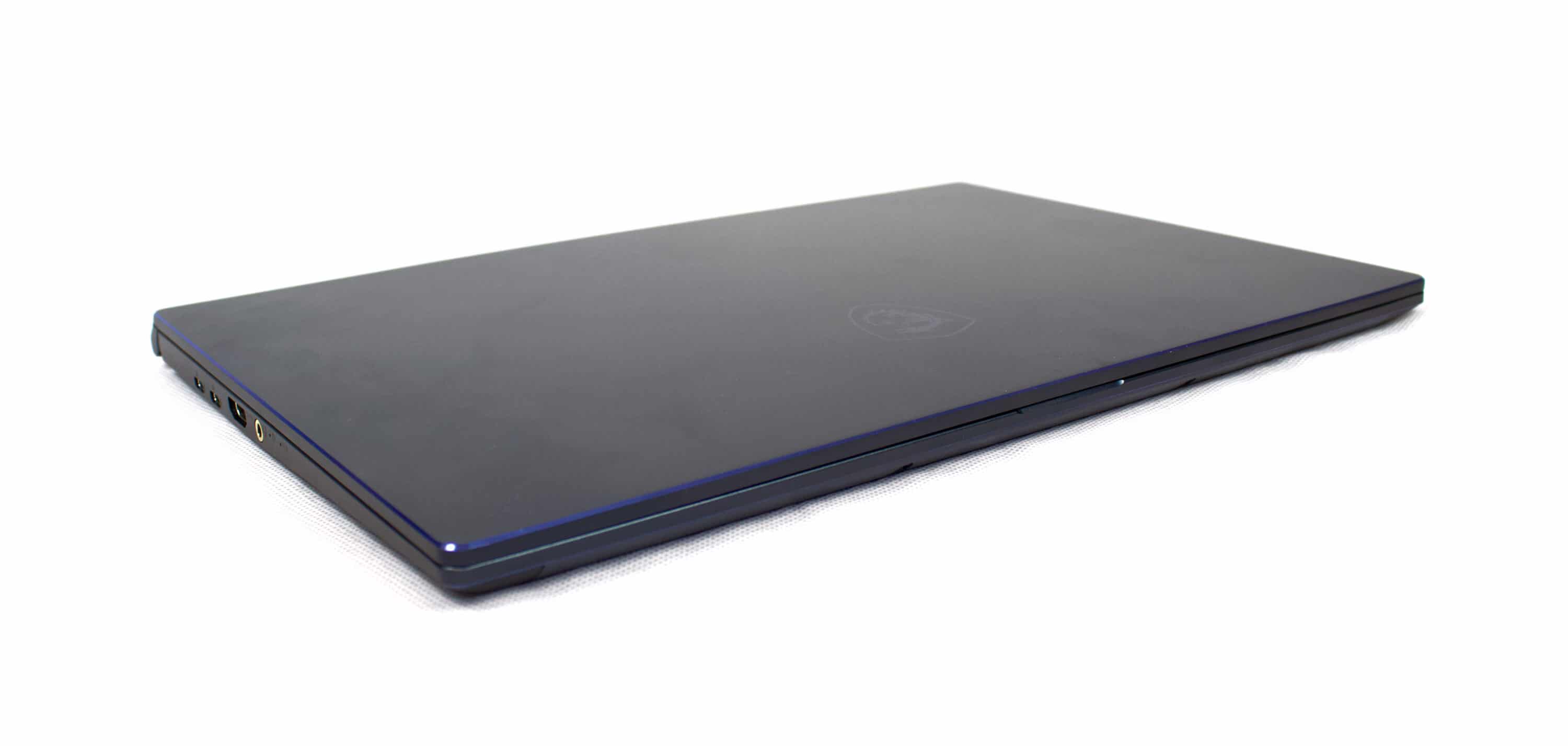 Das nur 15,9 mm dünne MSI Prestige 15 besteht aus einem grau-bläulichen Aluminium-Body und ist gut verarbeitet. Unser Testgerät scheint schon länger im Umlauf zu sein und hat leider zwei Kratzer abbekommen. Ansonsten sind keinerlei Fehler zu entdecken. Die Verwindungssteifigkeit ist auf gutem Niveau. Mit ca. 1,65 kg besitzt das Prestige 15 ein gutes Gewicht in der 15 Zoll Klasse.