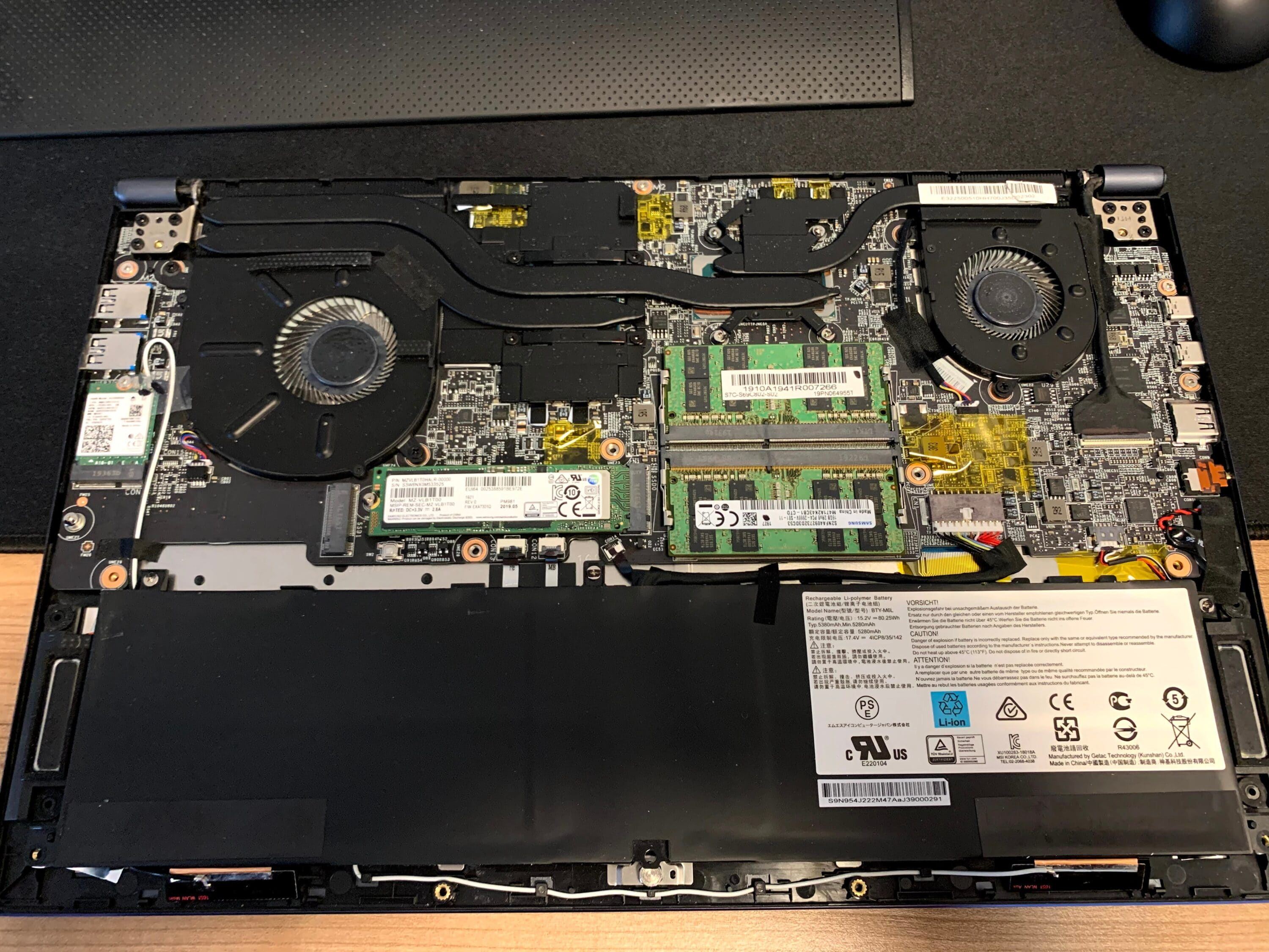 Das Innenleben offenbart ein überraschend gut wartbares Innenleben. Die bereits verbaute SSD und der RAM können problemlos entfernt und getauscht werden.