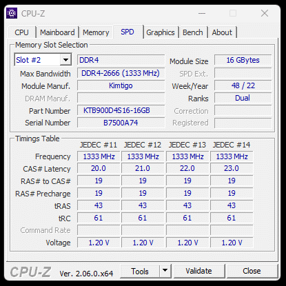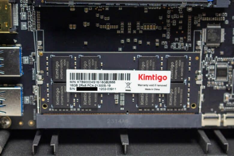 Außerdem verbaut NiPoGi einen RAM-Riegel mit 16GB DDR4 von Kimtigo sowie einer Taktrate von 2666MHz. Damit läuft der Arbeitsspeicher, anders als beworben, leider nur im Single Channel. Gut für die Aufrüstbarkeit des CK10, schlecht für die Performance des Intel Core i7. Ebenfalls schlecht ist, dass der RAM-Takt ab Werk über das BIOS nur auf maximal 2400MHz eingestellt war.