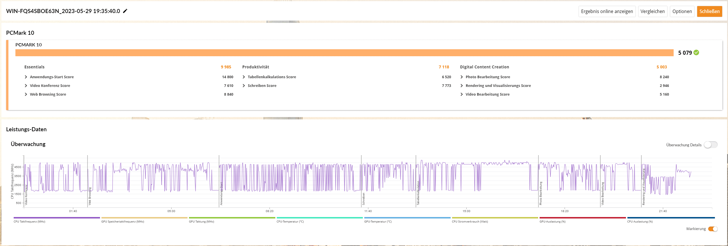 | PCMark 10 Gesamtwert | 5.043 Pkt. |