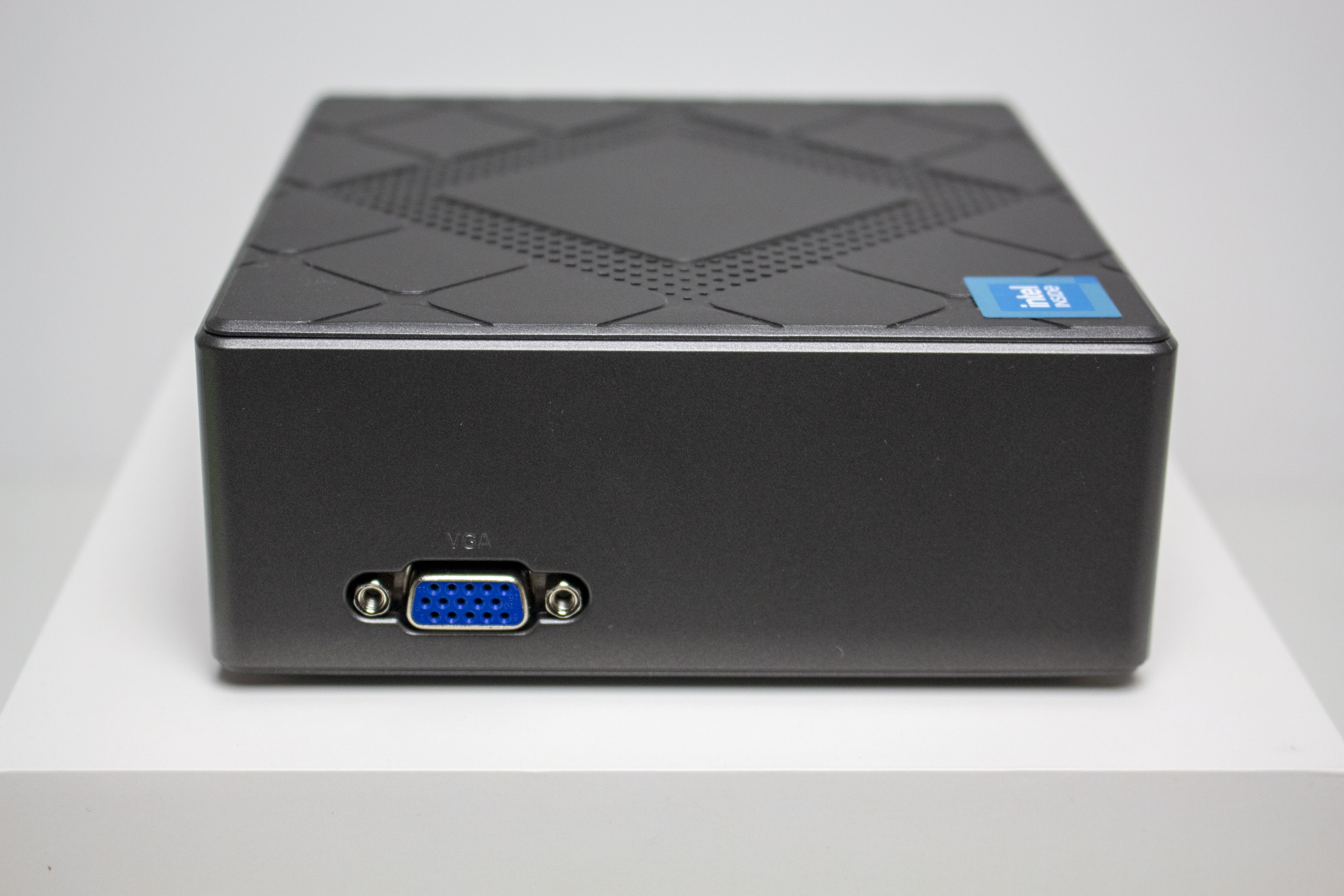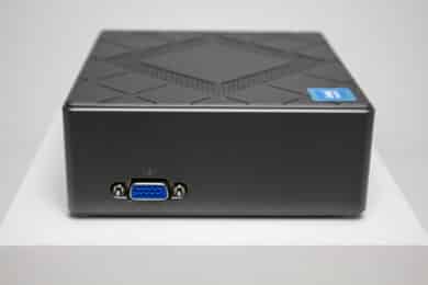 Untypisch für einen Mini-PC lässt sich an der linken Seite noch einen VGA-Port erkennen. Je nach Anwendungsfall des CK10 könnte dieser durchaus interessant sein. Für die meisten Kaufinteressenten wirkt ein VGA-Anschluss aber vermutlich einfach nur altmodisch. Zudem ist die seitliche Positionierung etwas unvorteilhaft für die Verkabelung.
