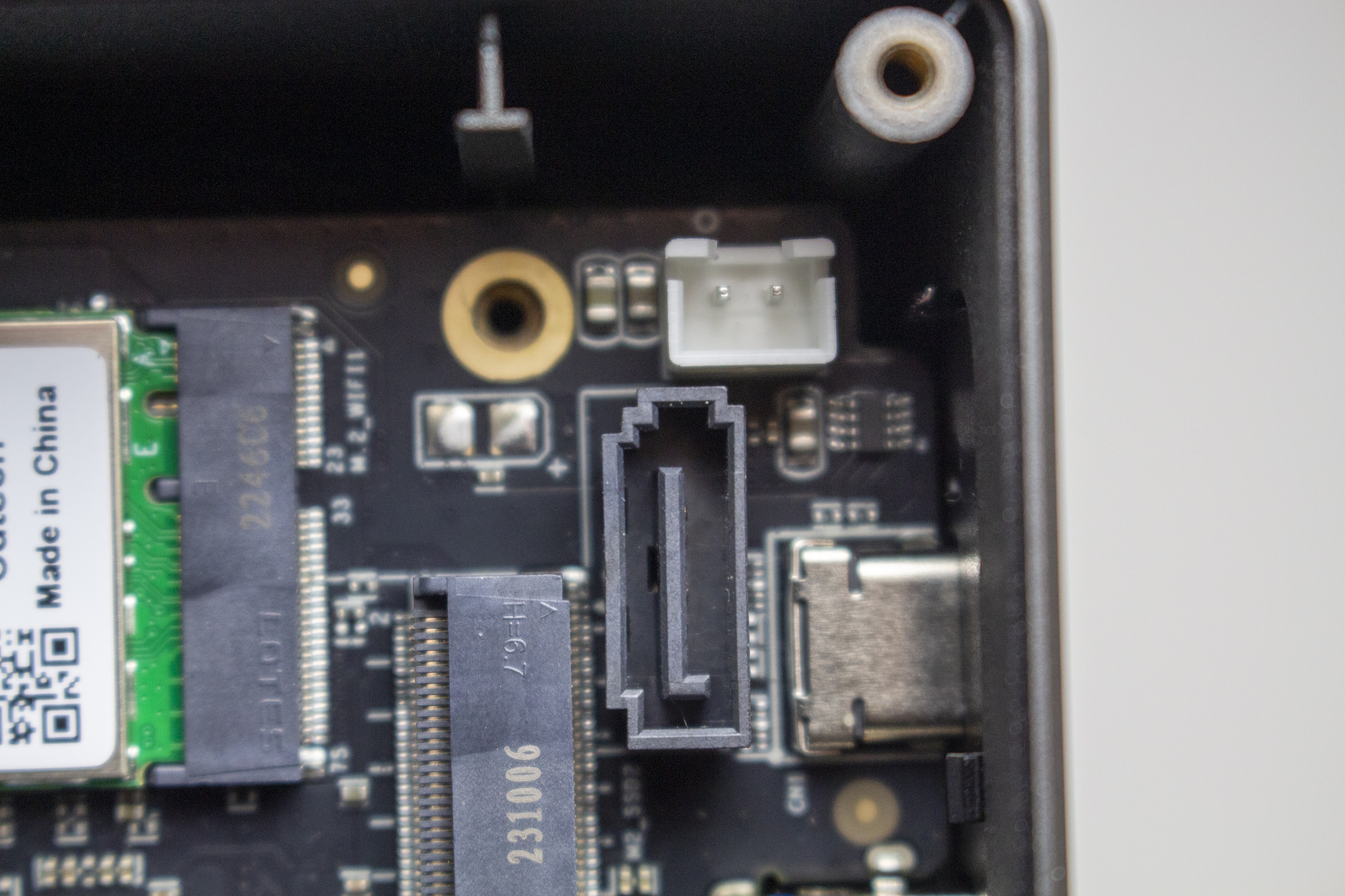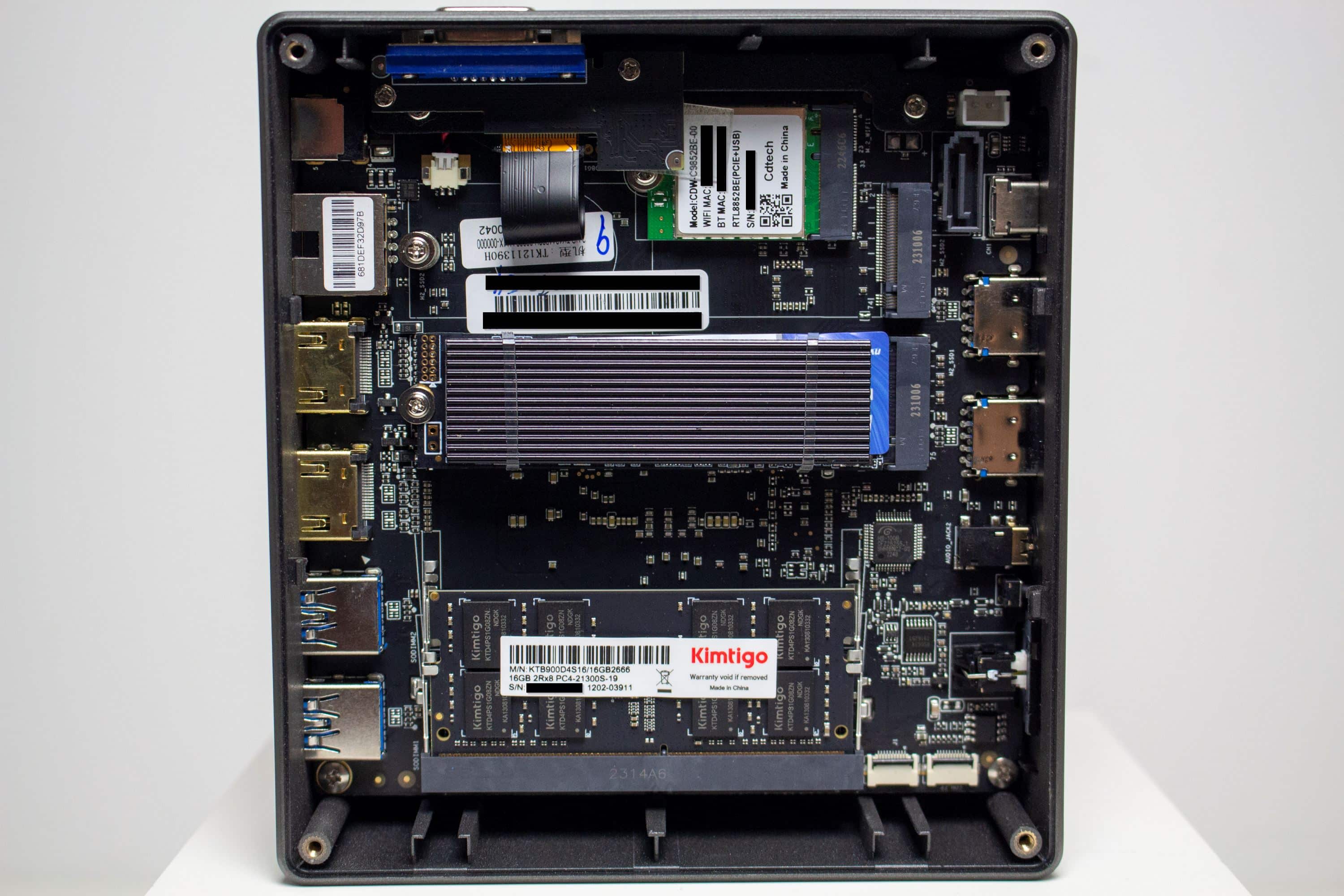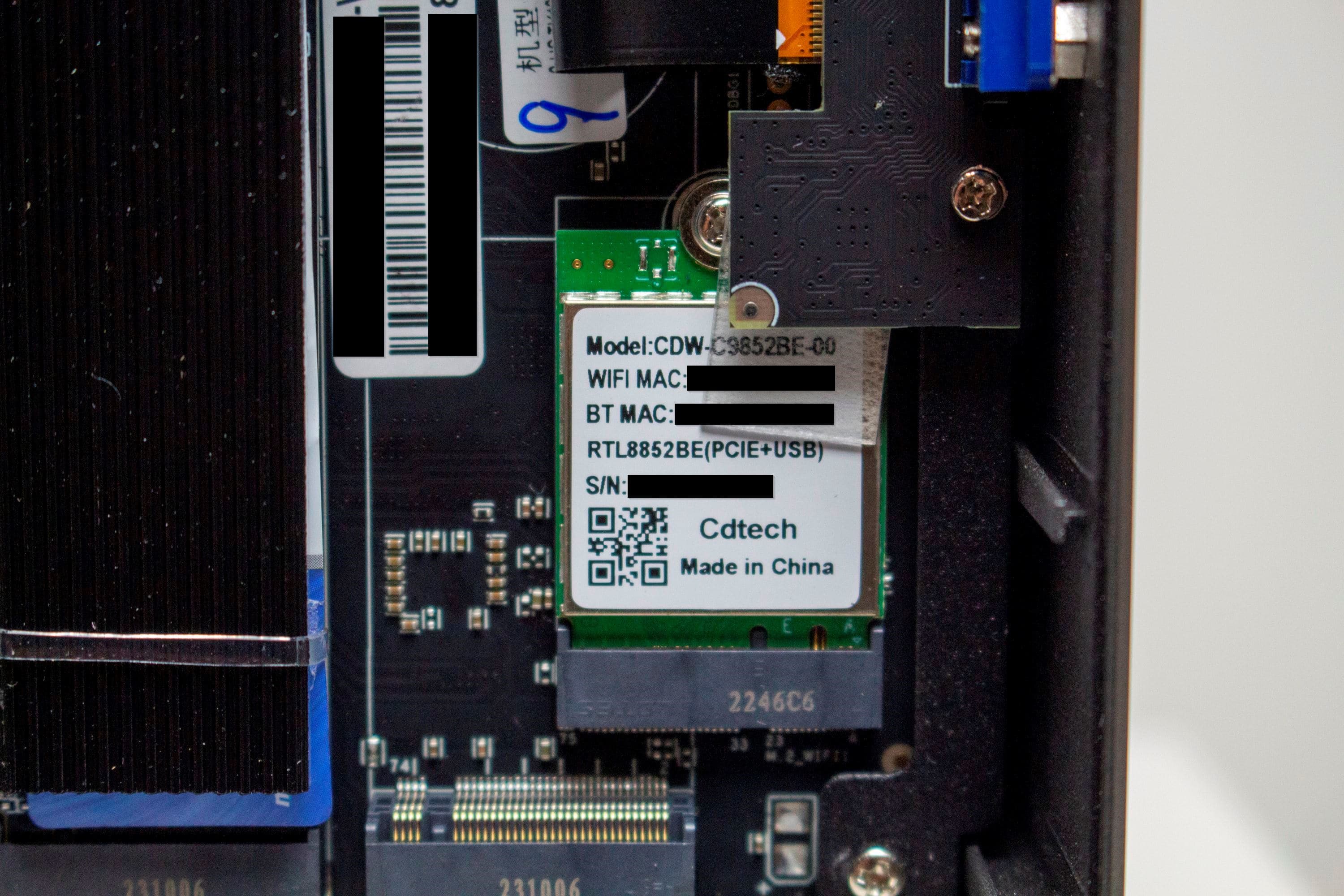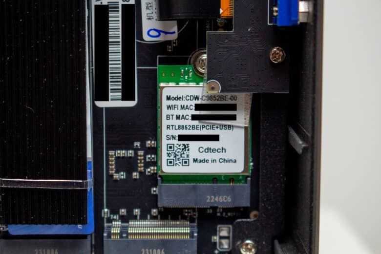 Um auch kabellose Verbindungen zu ermöglichen, verbaut NiPoGi einen Wi-Fi- bzw. Bluetooth-Adapter von Realtek. Es handelt sich um den Chip RTL8852BE, welcher mit Support für Wi-Fi6 und Bluetooth 5.0 daherkommt. Da sich die Realtek-Platine in einem üblichen m.2-Slot befindet, kann diese auch problemlos gegen eine andere Karte ausgetauscht werden. Während des Testzeitraums kam es zu keinen Abbrüchen der Wi-Fi- oder Bluetooth-Verbindung. Auch in Bezug auf die Performance konnten wir keine Probleme feststellen.