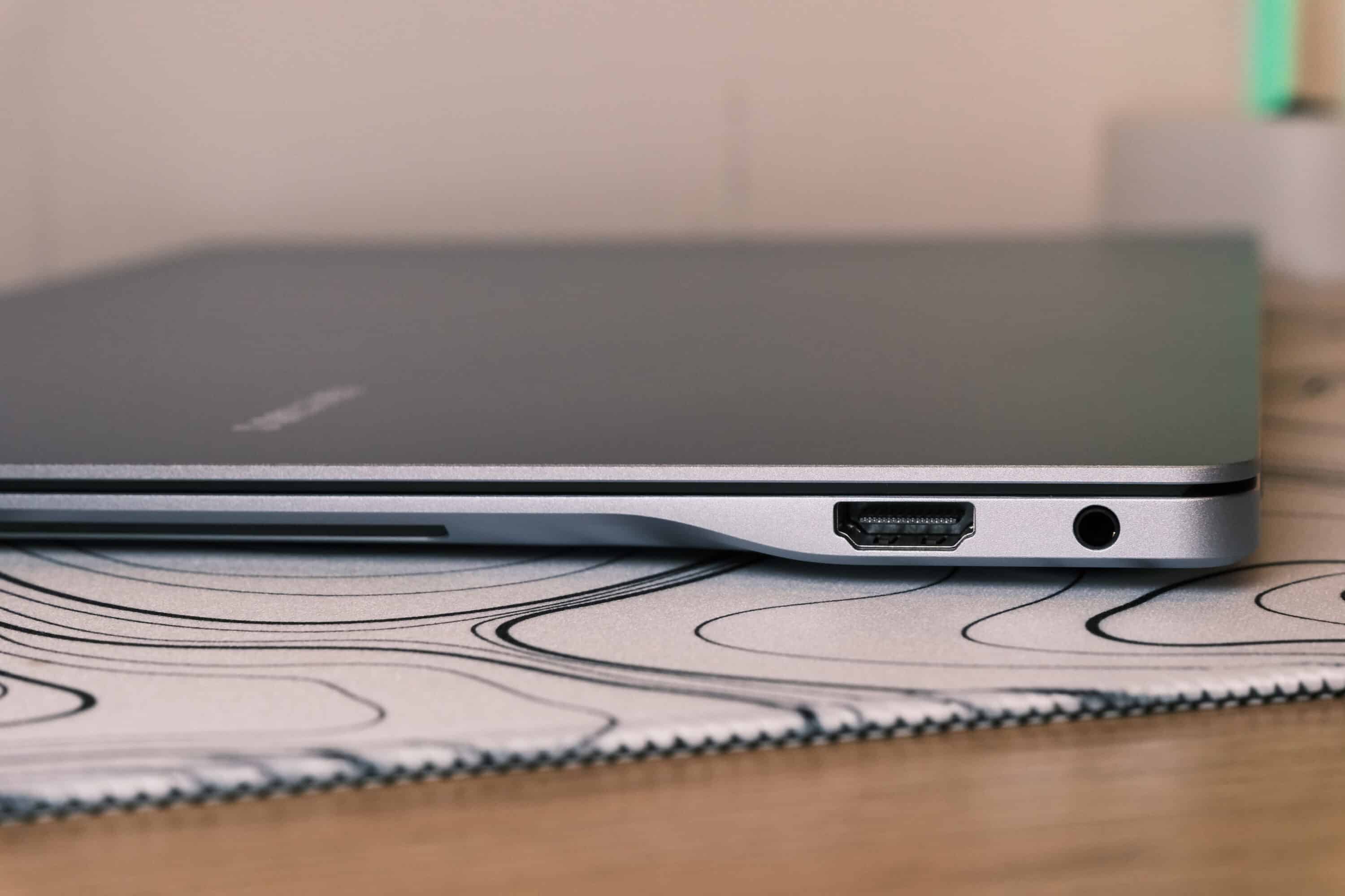 Beide mit DisplayPort-Alt-Modus und PowerDelivery, wobei einer der Anschlüsse belegt ist, wenn ihr den Laptop am Strom betreibt oder aufladet. Auf der rechten Seite kommen ein HDMI 2.1-Anschluss, sowie einmal 3,5-mm-Klinke für die Verbindung mit Kopfhörern oder Headsets hinzu. Mehr gibt es leider nicht.
