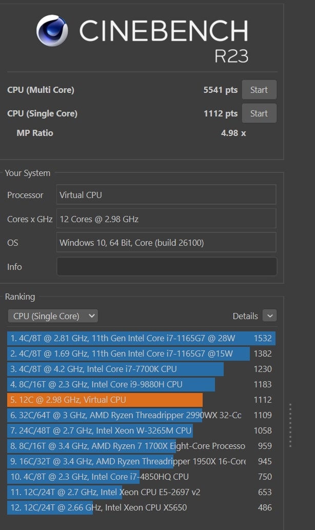 | Cinebench R23 Single Core | 1.112 Pkt. |
