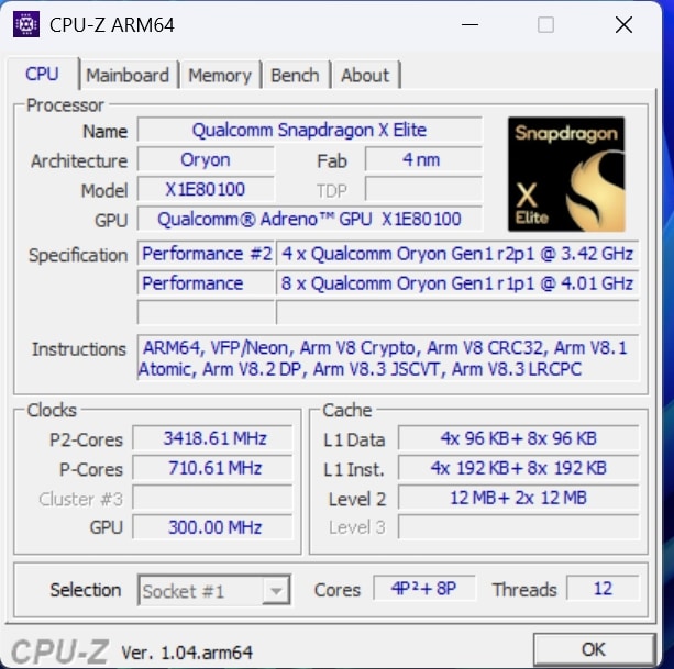 | Prozessor | Qualcomm Snapdragon X Elite X1E-80-100 (12 x 4,0 GHz) |