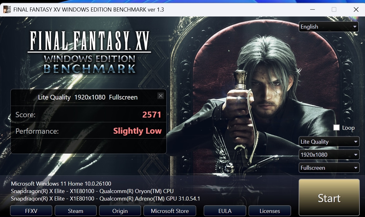Die Adreno X1-85 iGPU des Qualcomm Snapdragon X Elite X1E-80-100 ist merklich schneller als die der Snapdragon X Plus-Modelle, was allerdings nicht bedeutet, dass ihr hier Wunder erwarten solltet. Die Gaming-Leistung liegt insgesamt auf unterdurchschnittlichem Niveau und erreicht ungefähr 50 Prozent der Performance, die die Intel Arc iGPU zu Leisten im Stande ist. Zum Zocken eignet sich das Galaxy Book4 Edge also eher nicht, dafür bleibt die Leistung auch im Akkubetrieb konstant.